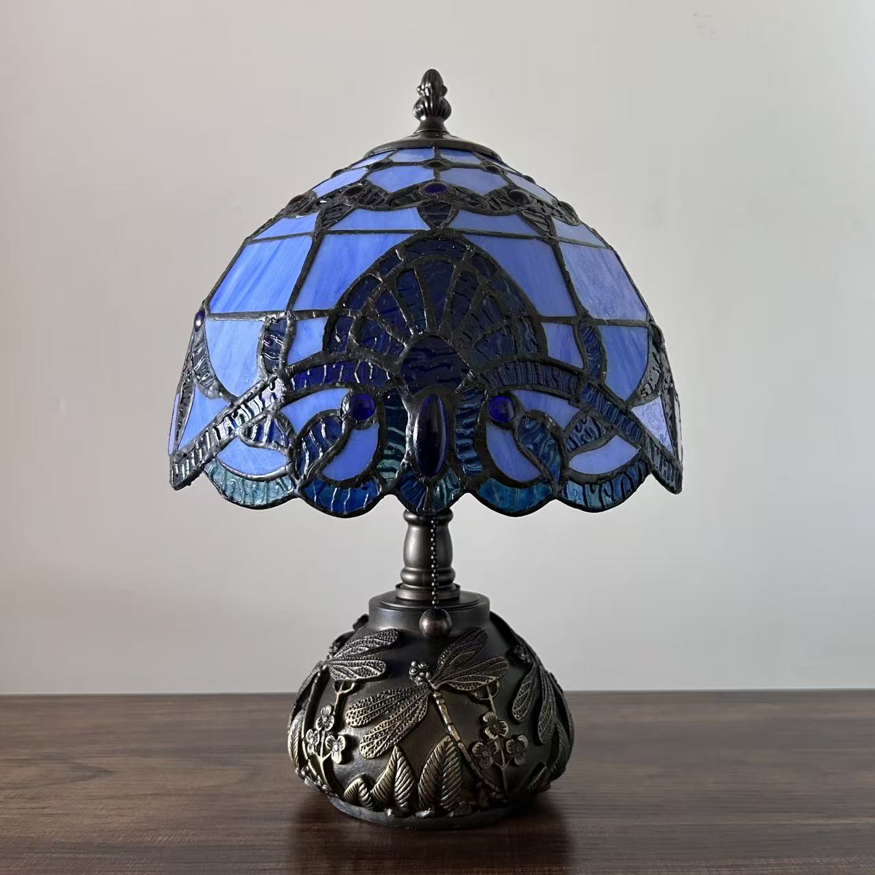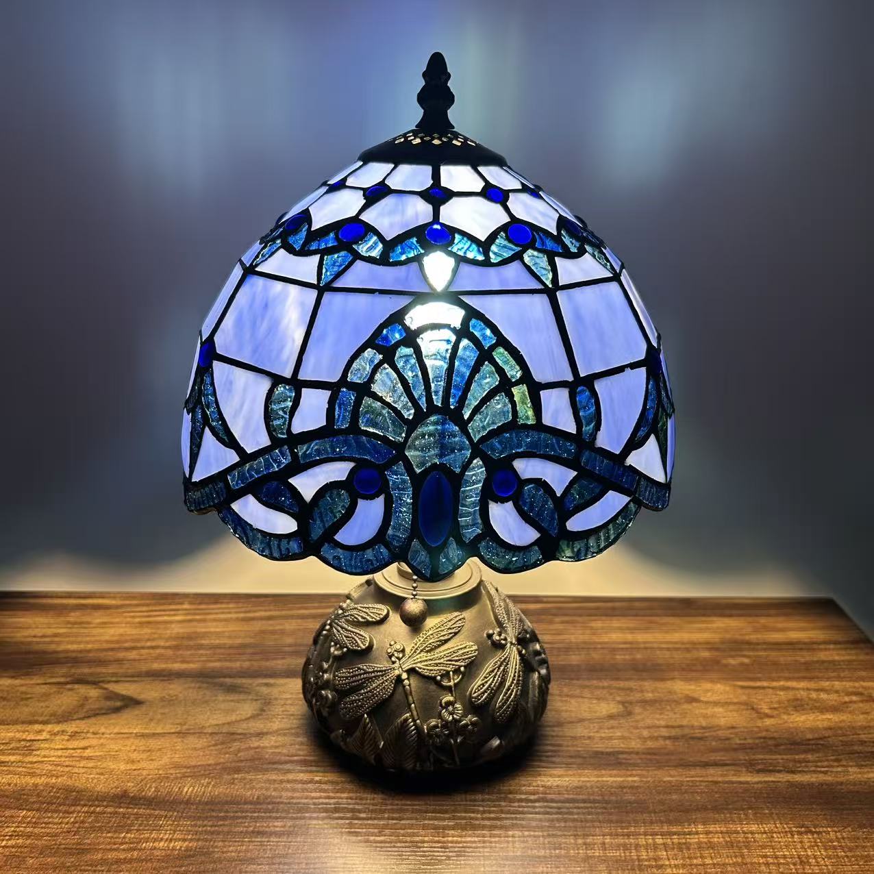 Tiffany Style Table Lamp Blue Stained Glass Baroque Style Included LED Bulb 10"W*10"D*14"H