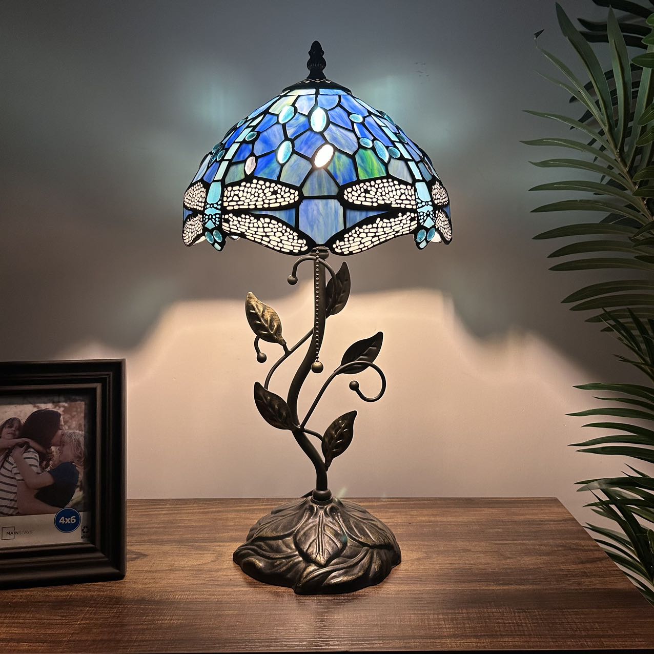 Enjoy Tiffany Style Table Lamp Blue Stained Glass Dragonfly Include LED Bulb ET1008 H21*W10 In