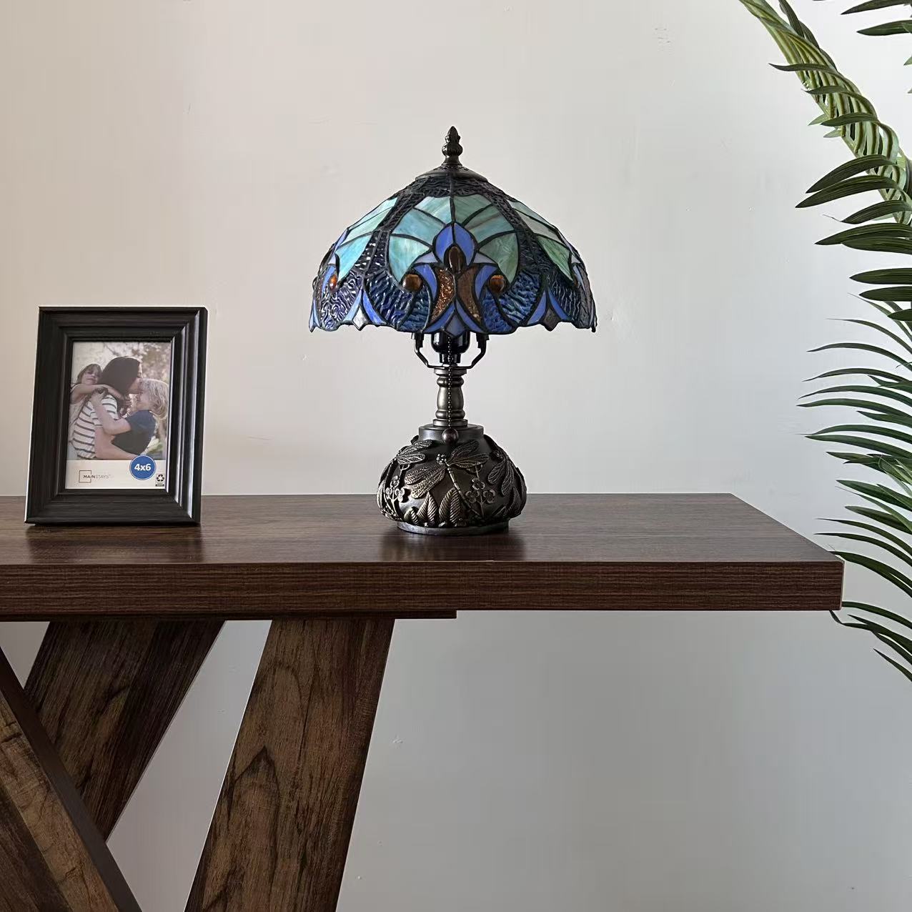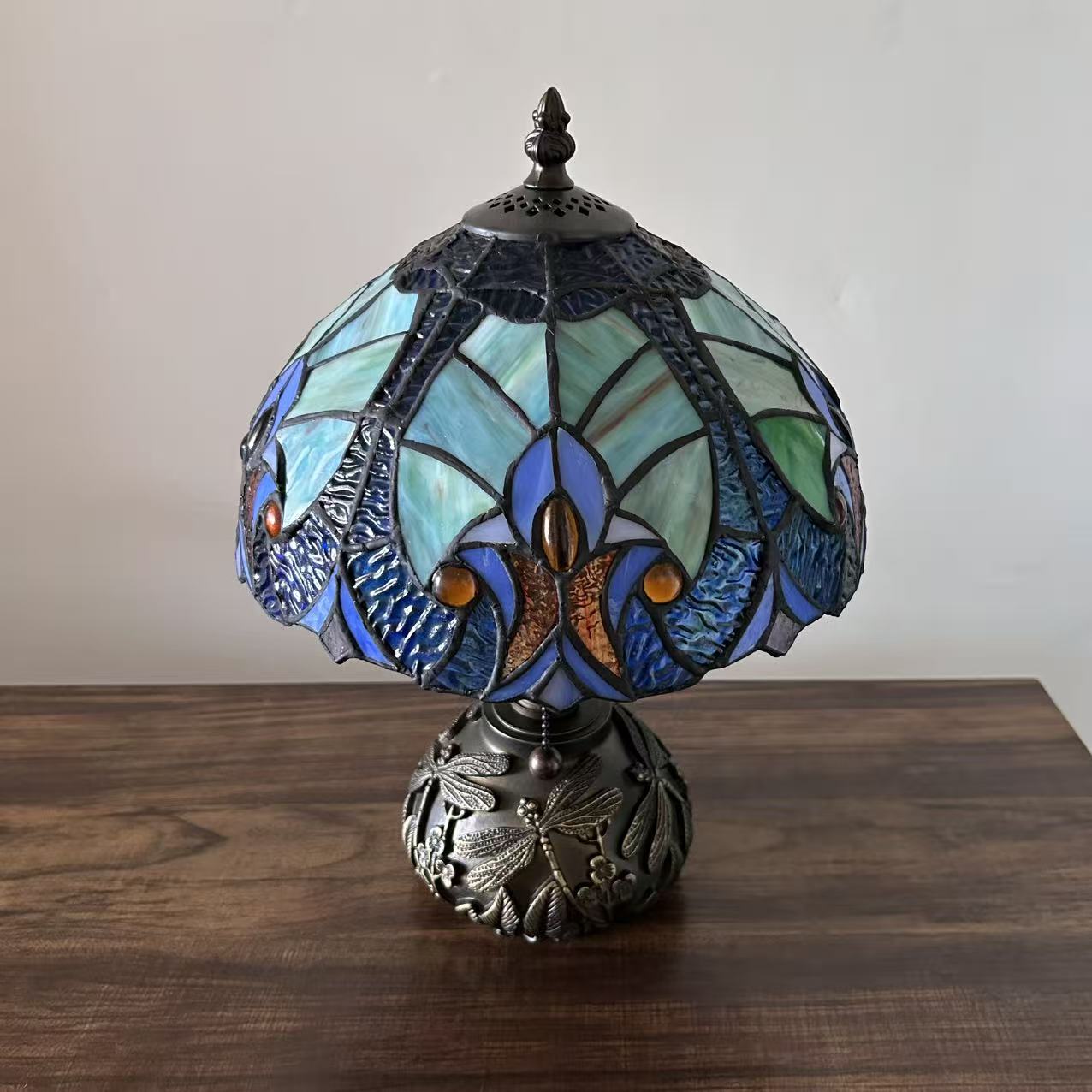 Tiffany Style Table Lamp Blue Stained Glass Included LED Bulb 10"W*10"D*14"H