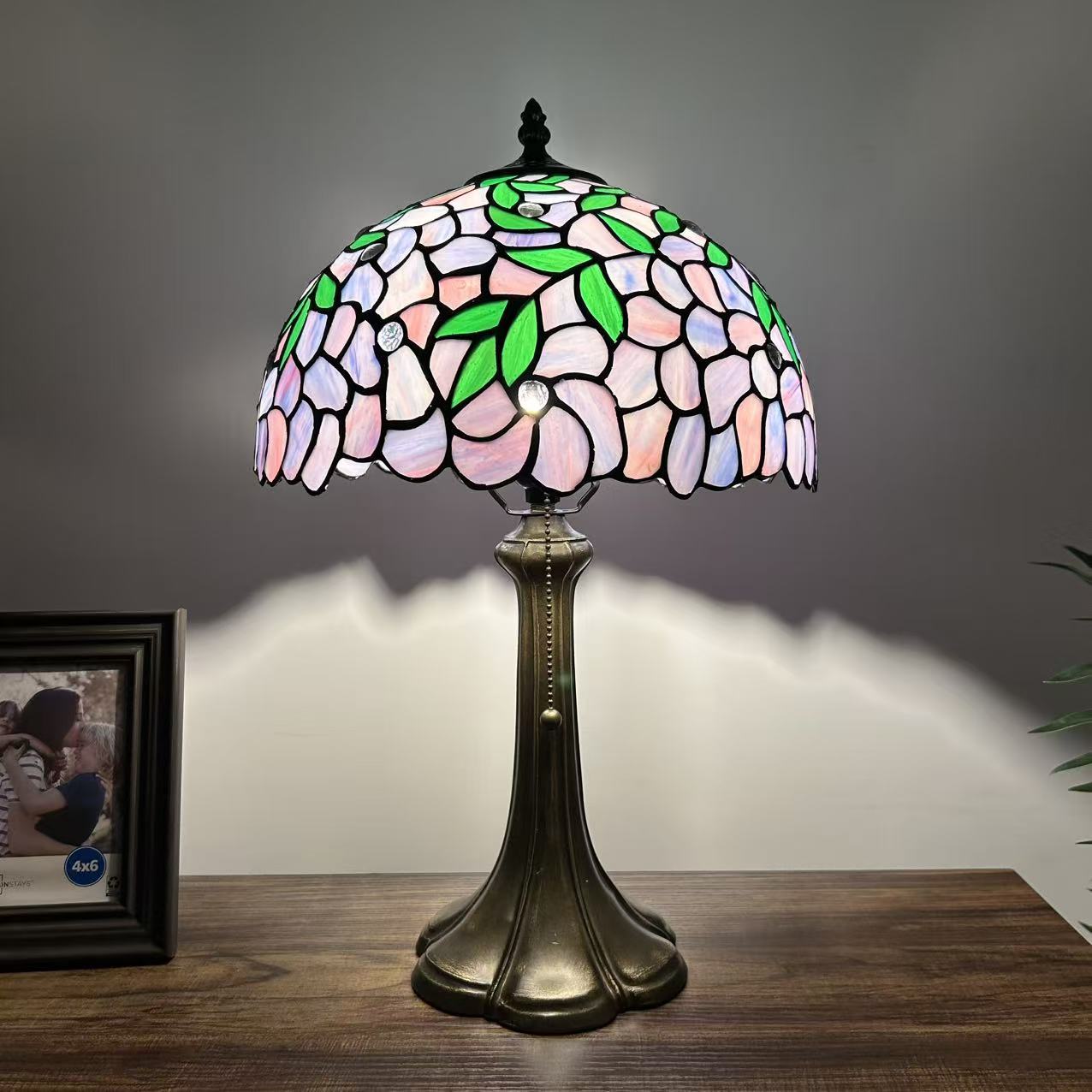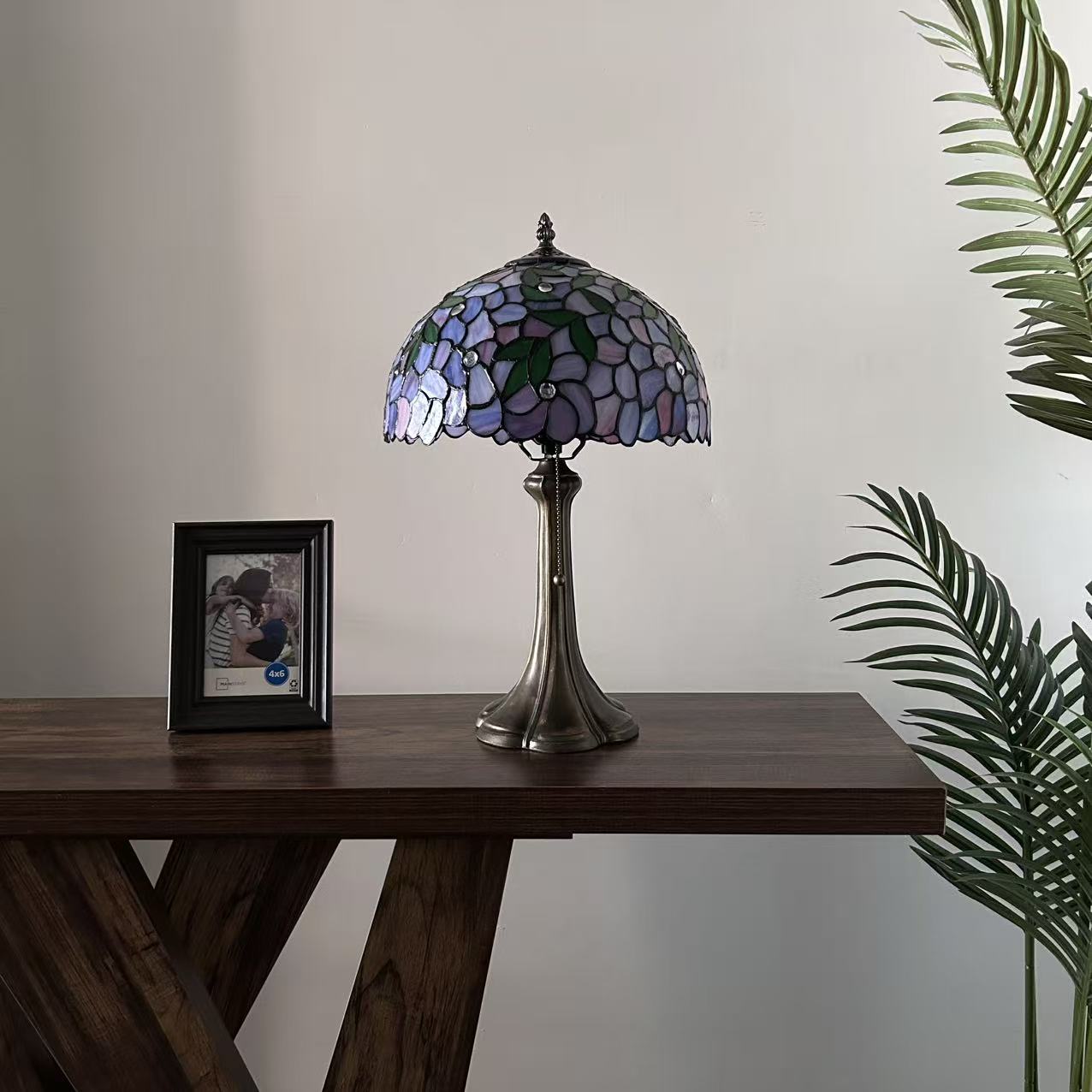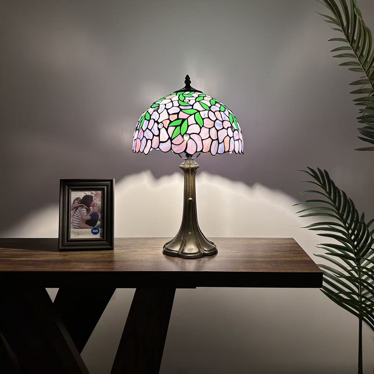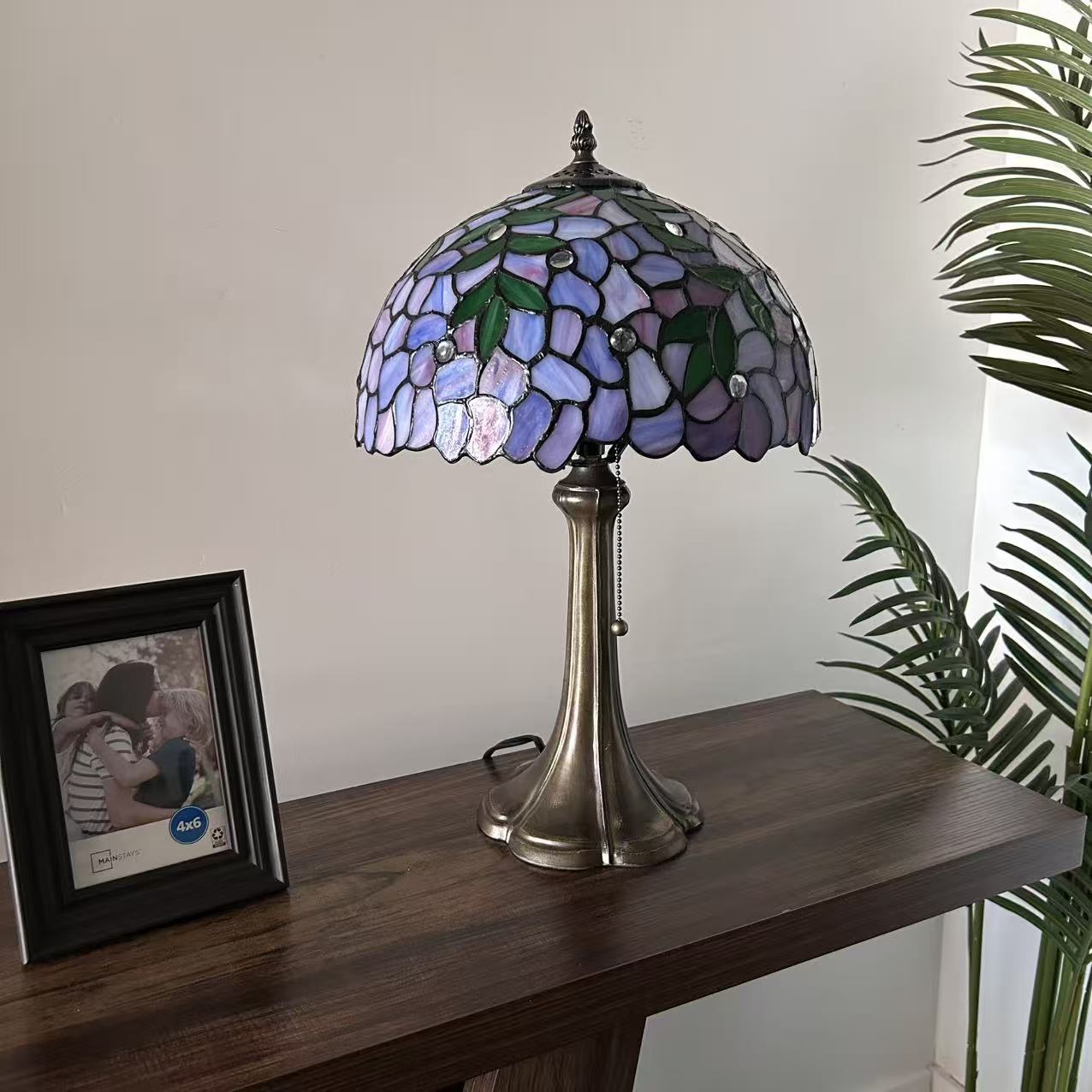 Tiffany Style Table Lamp Purple Stained Glass Green Leaves 12"W*12"D*19"H ET1281