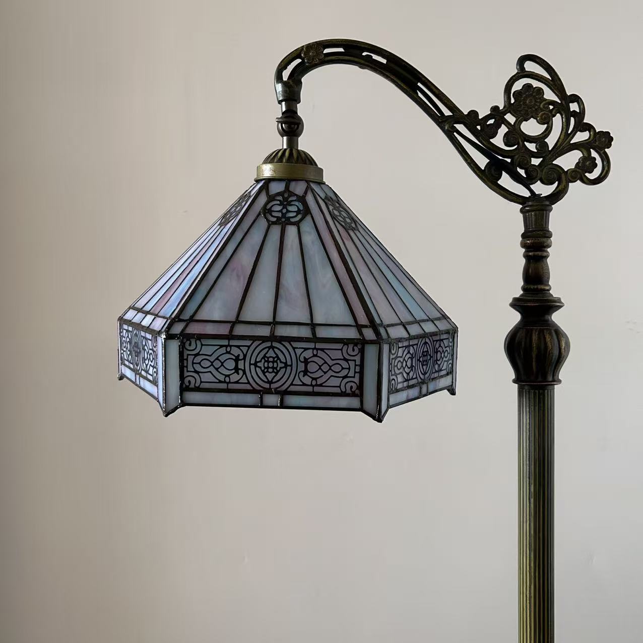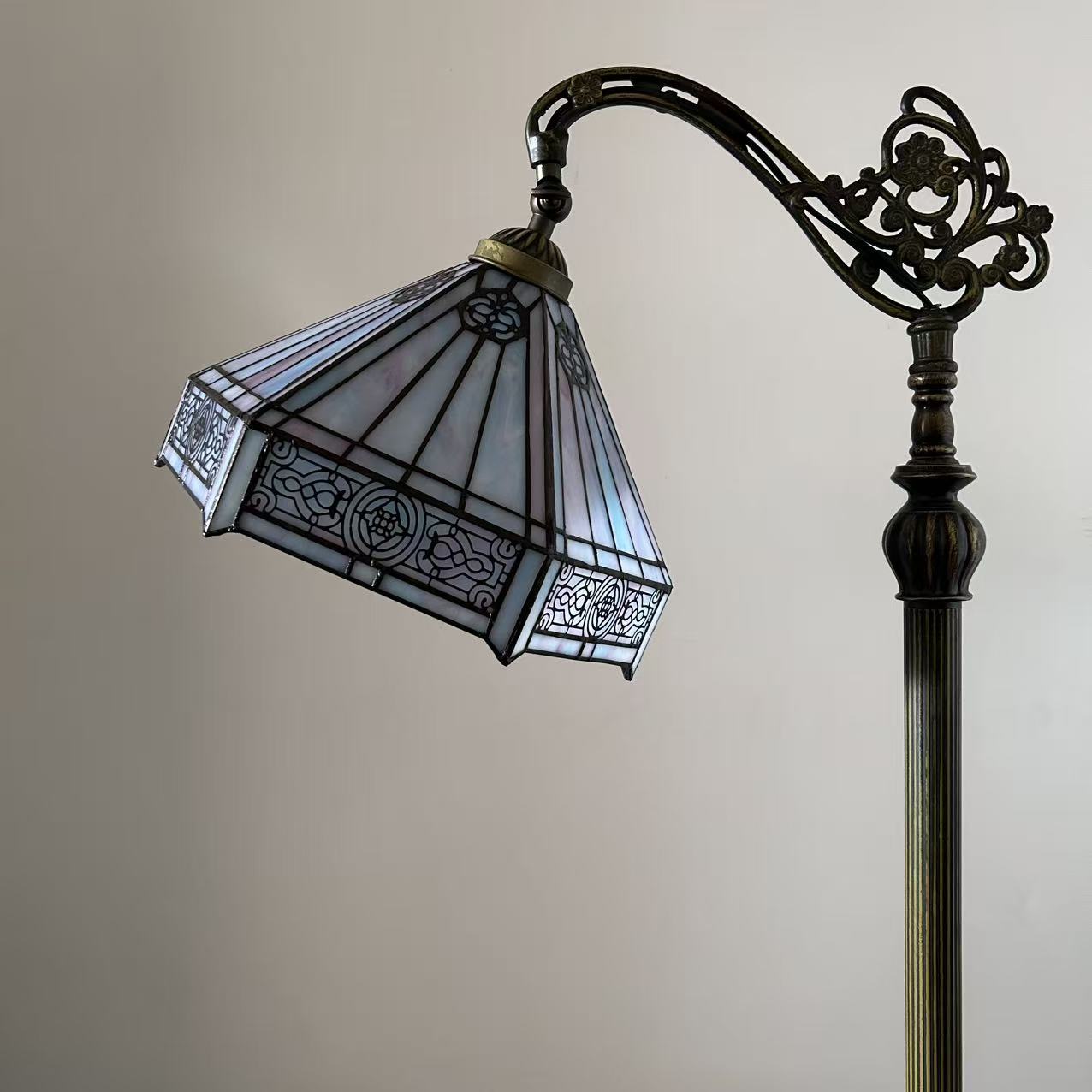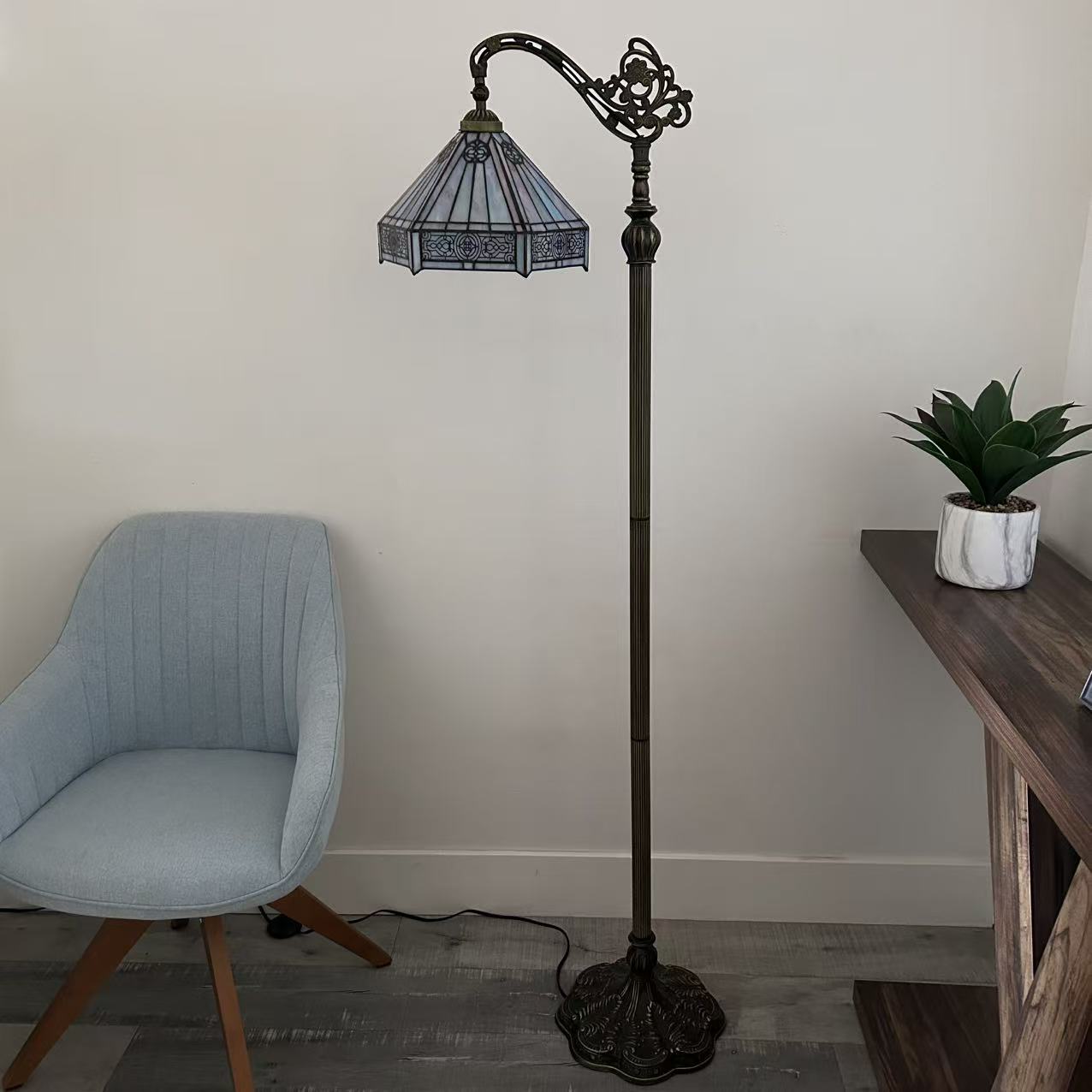 Tiffany Style Floor Lamp Sky Color Stained Glass Hexagon Gooseneck Adjustable EF1232