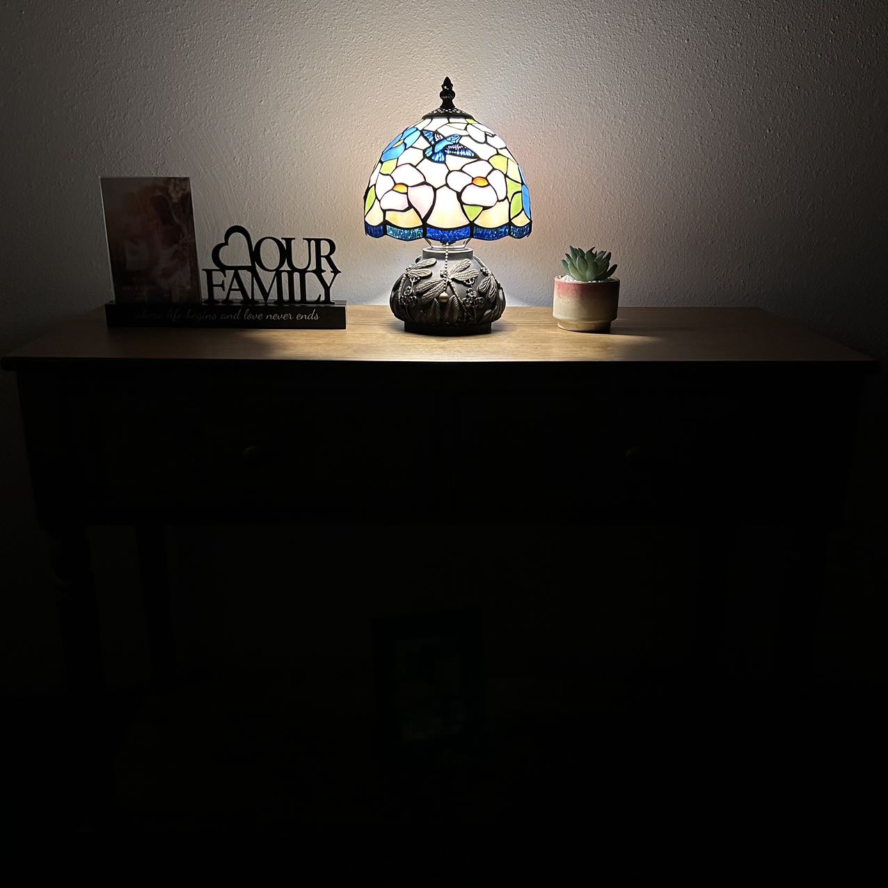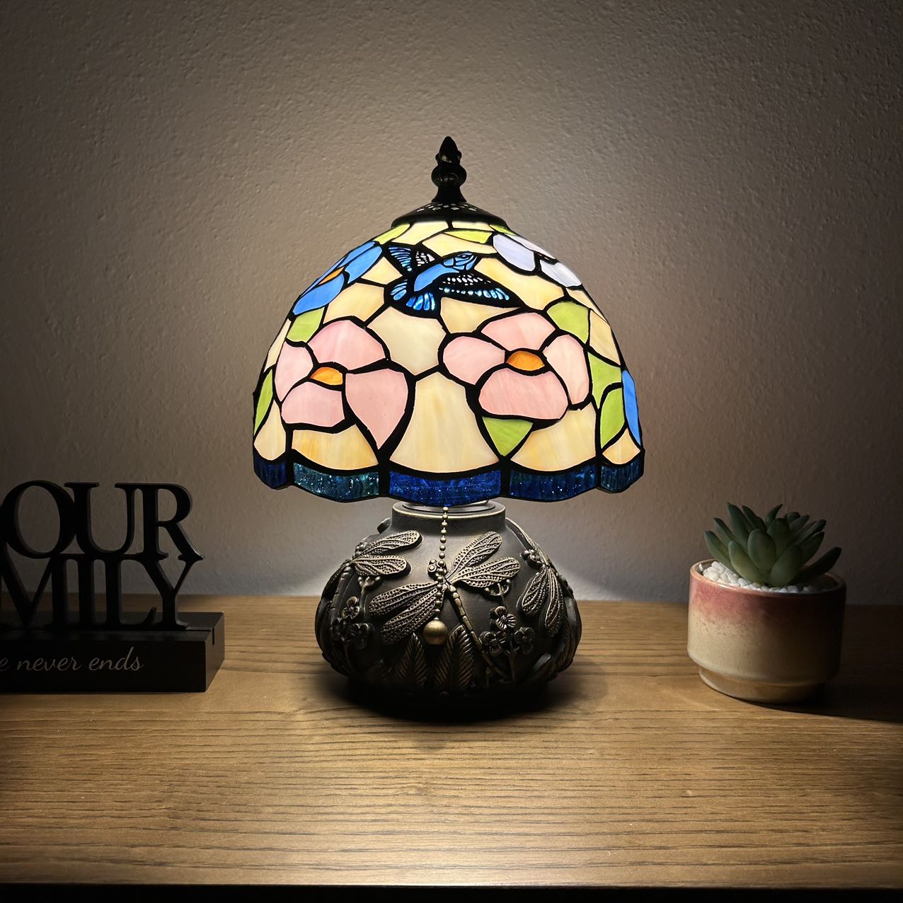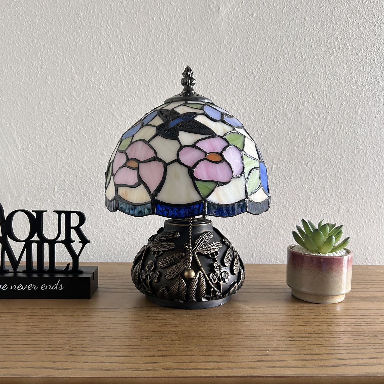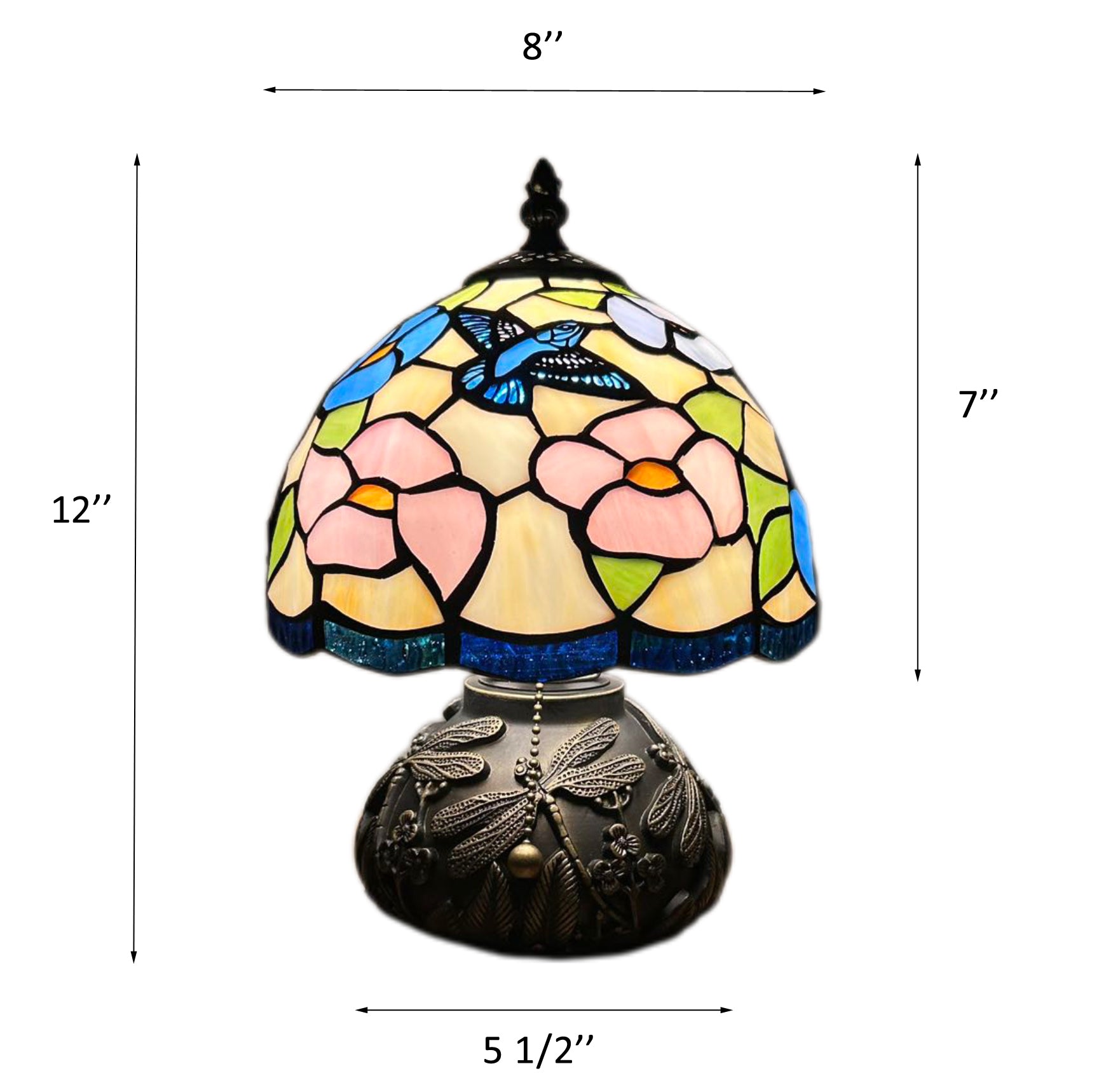 Tiffany Style Mini Table Lamp Stained Glass Hummingbird Flowers 8"W*8"D*12"H