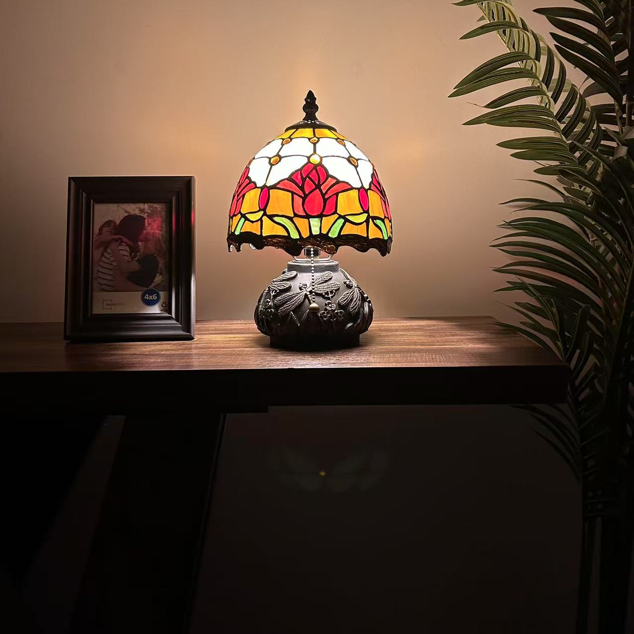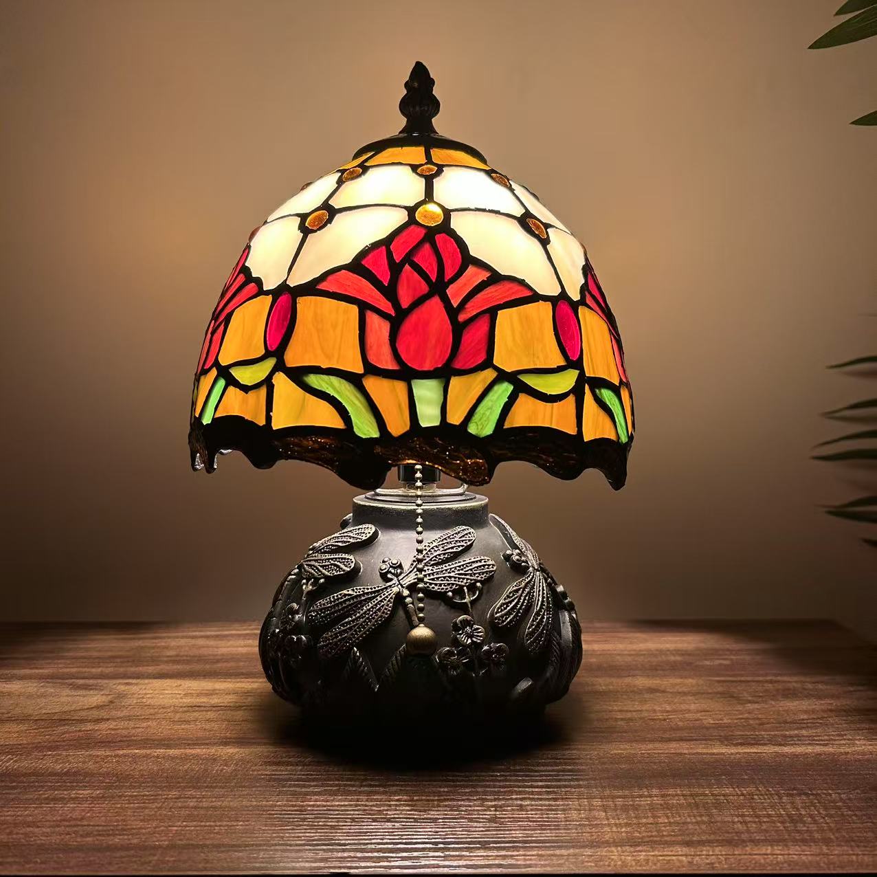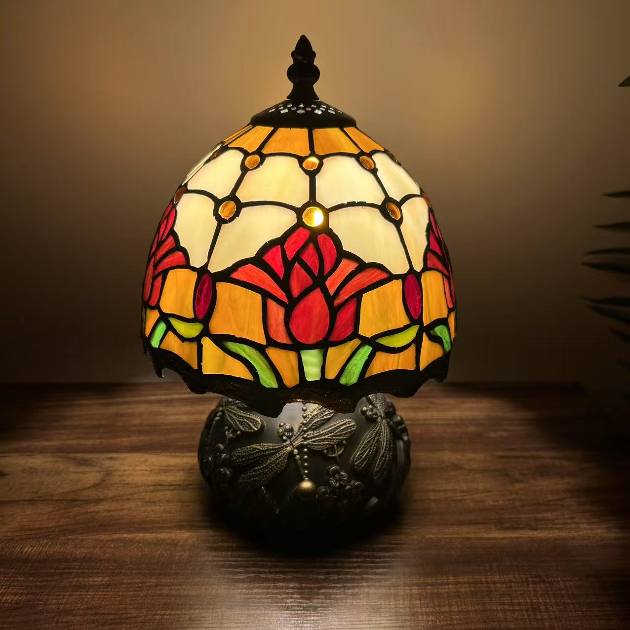 Tiffany Style Mini Table Lamp Stained Glass Red Tulips 8"W*8"D*12"H