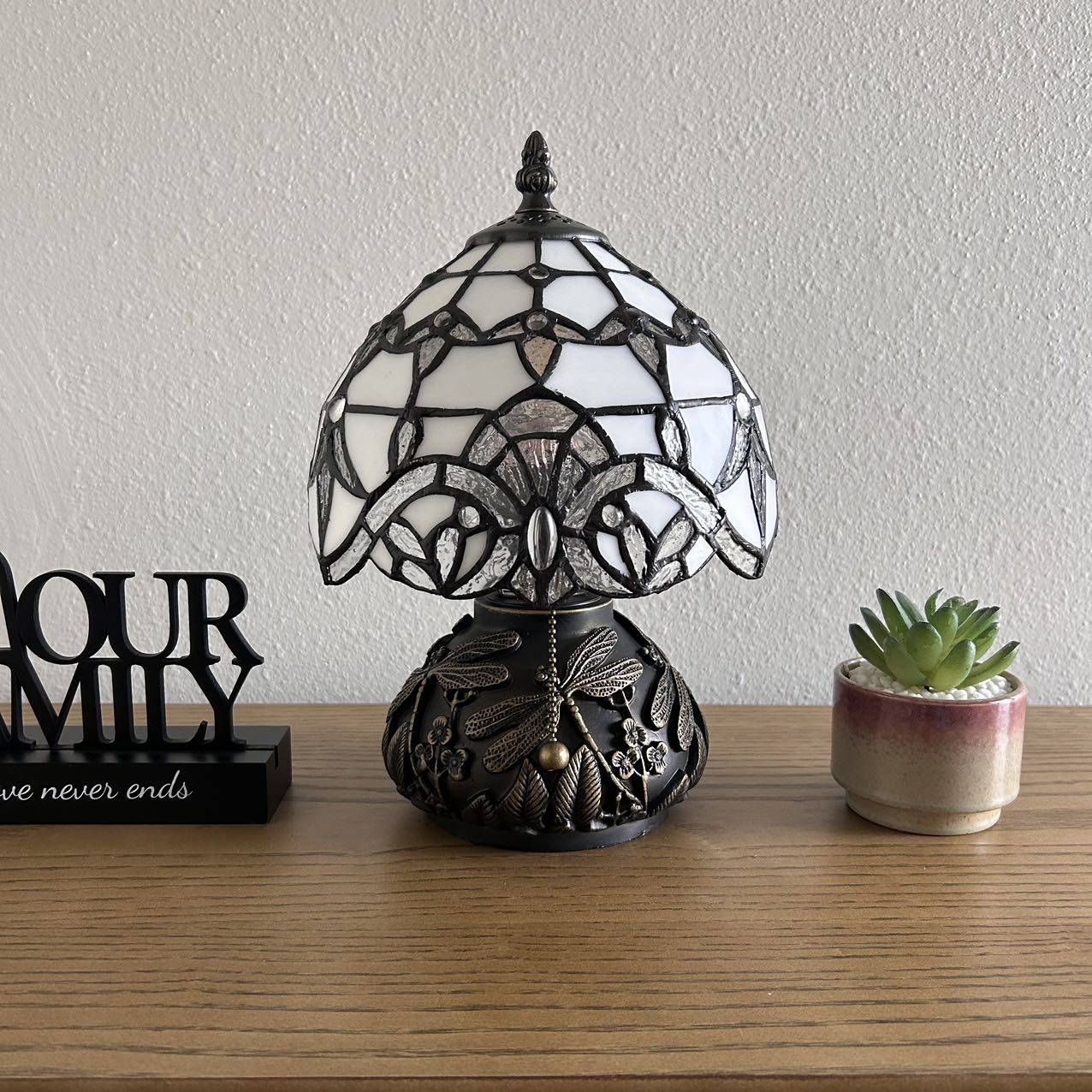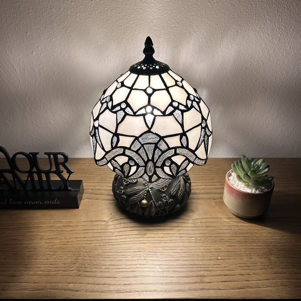 Tiffany Style Mini Table Lamp White Stained Glass Baroque Style 8"W*8"D*12"H