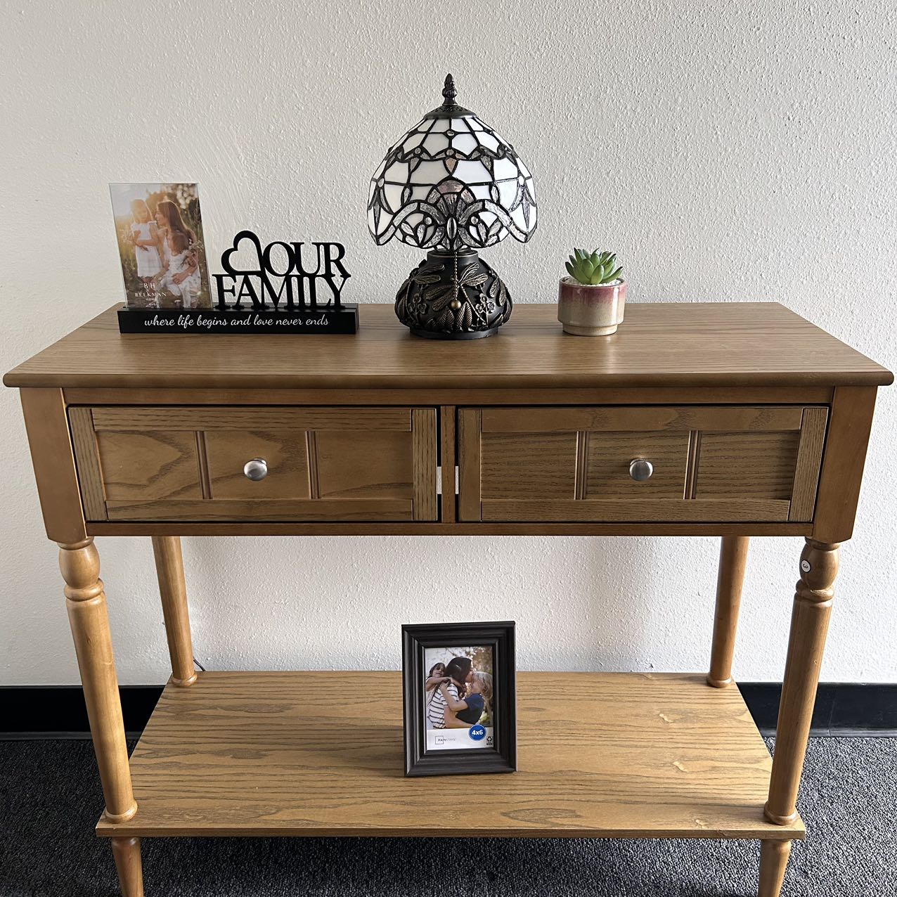 8"W*8"D*12"H.  Stained glass lamp shade. Resin base with bronze finish. Pull Chain Switch. LED bulb included. UL listed. Each piece of stained glass is hand-soldered into place using the traditional copper foil technique...30 days free return and refund guarantee!. Shipped with UPS or FedEx. **Free Shipping and Return apply only to orders shipping to the 48 continental United States**