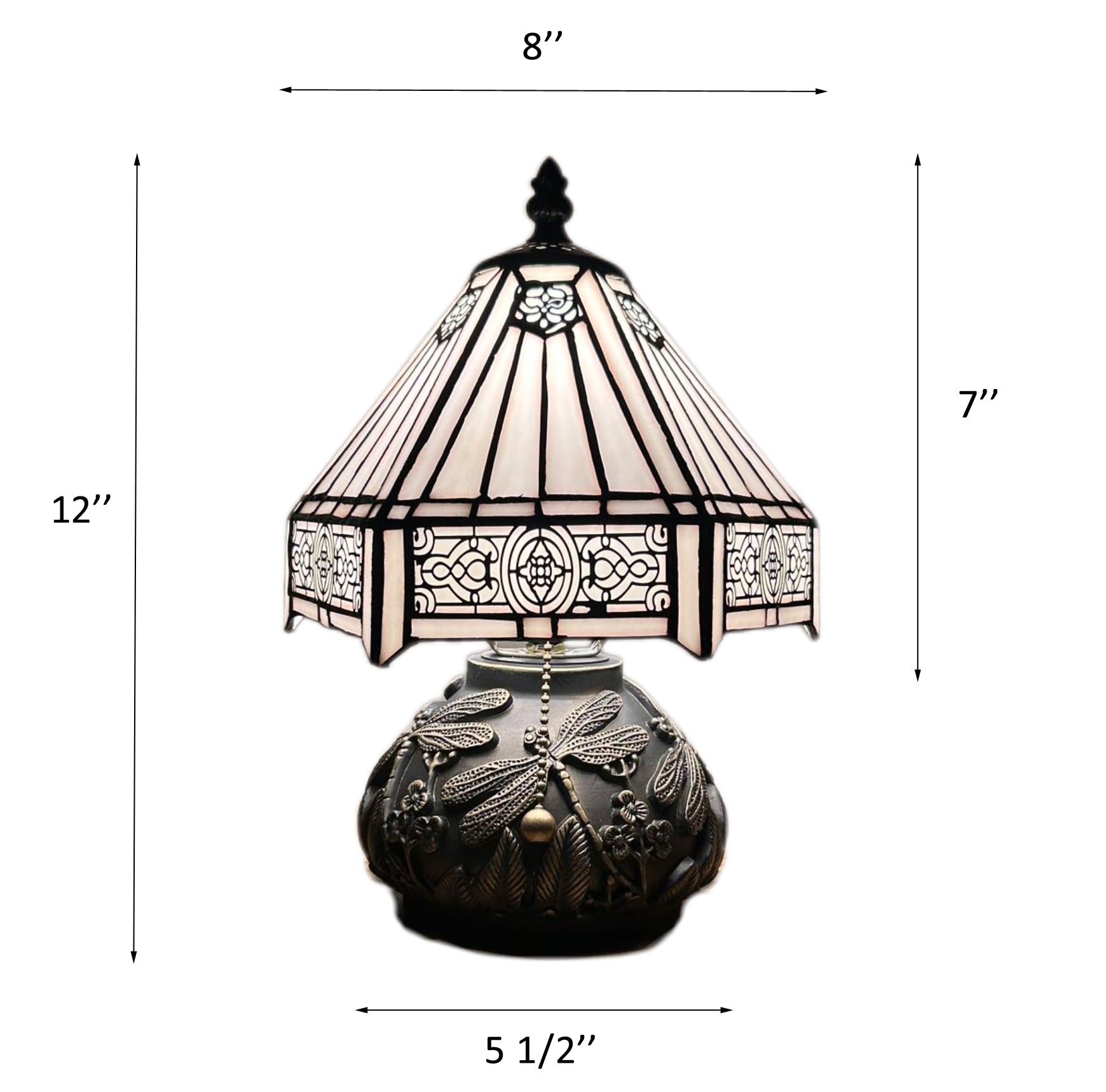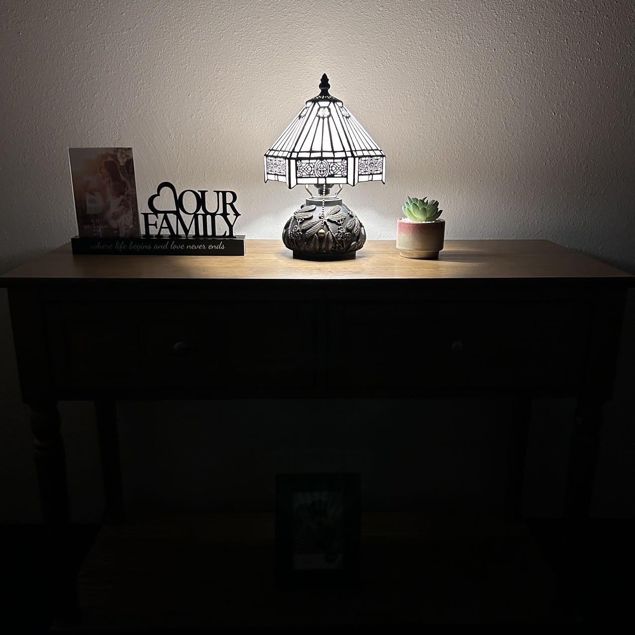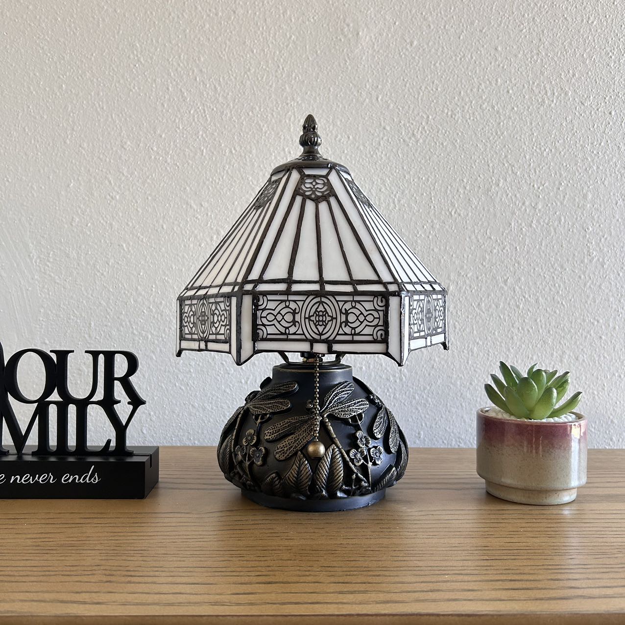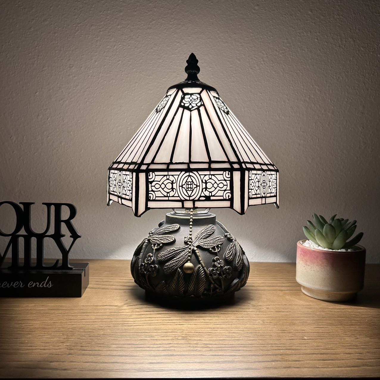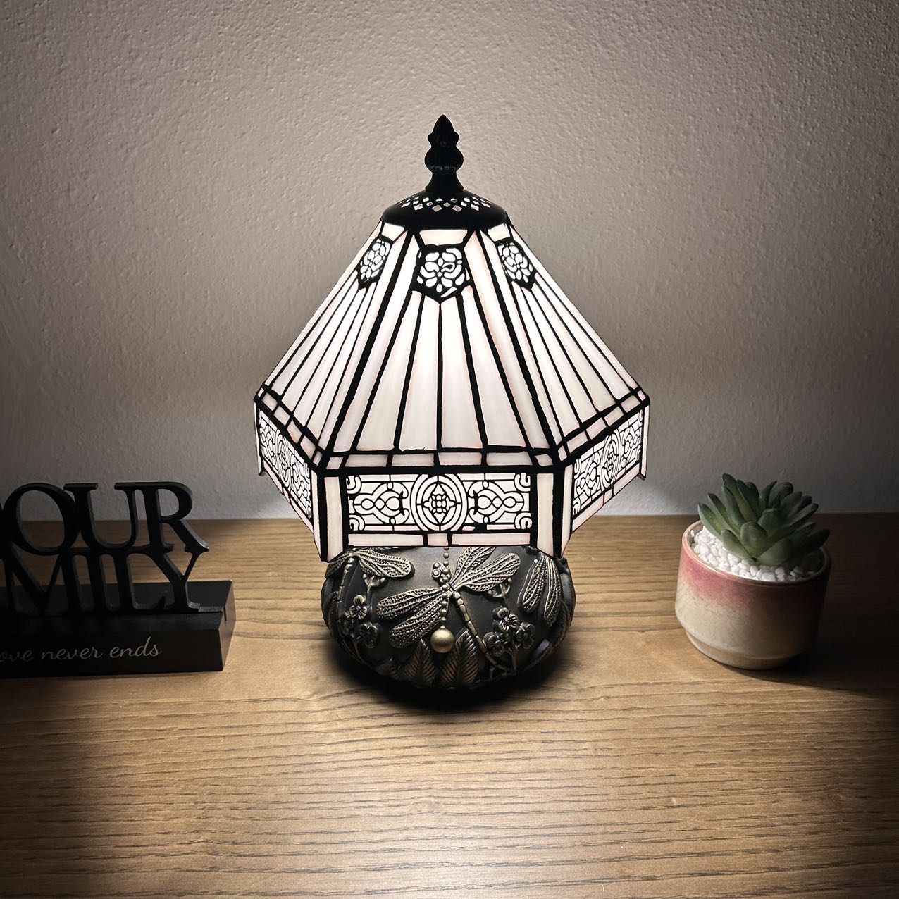Tiffany Style Mini Table Lamp White Stained Glass Hexagon 8"W*8"D*12"H