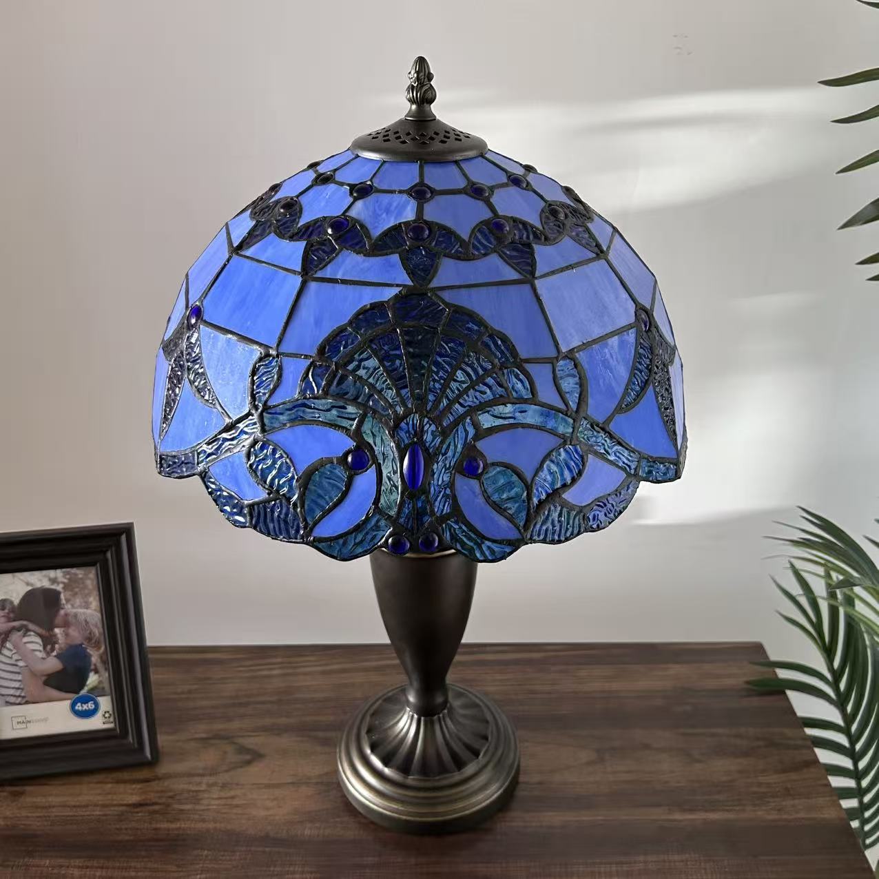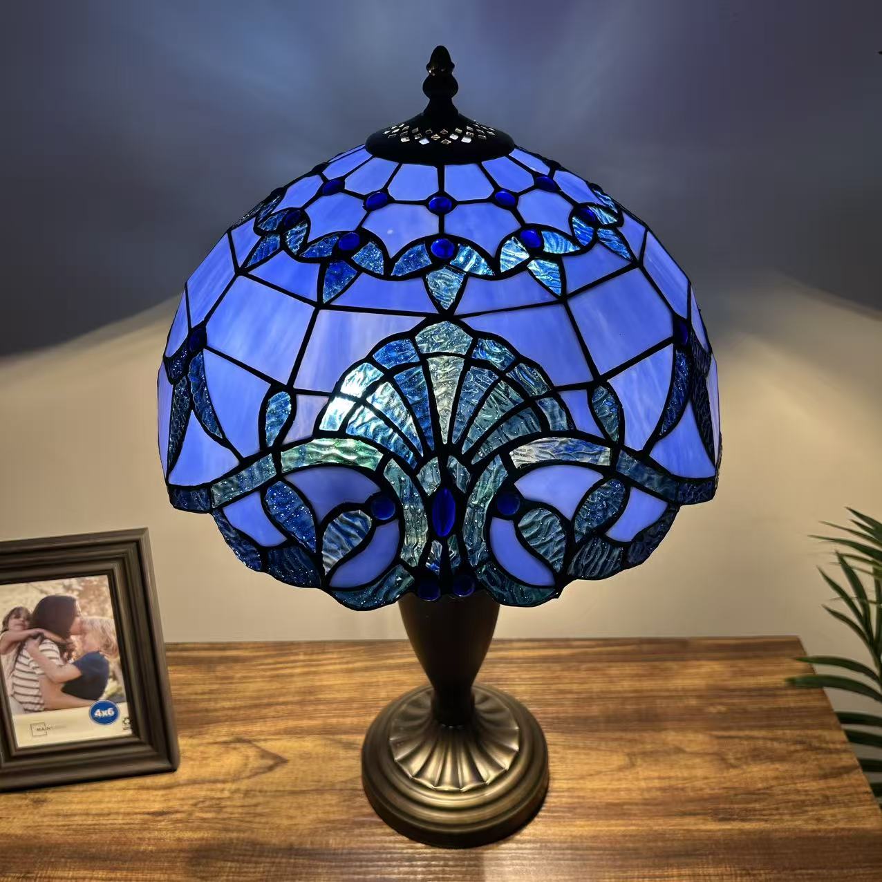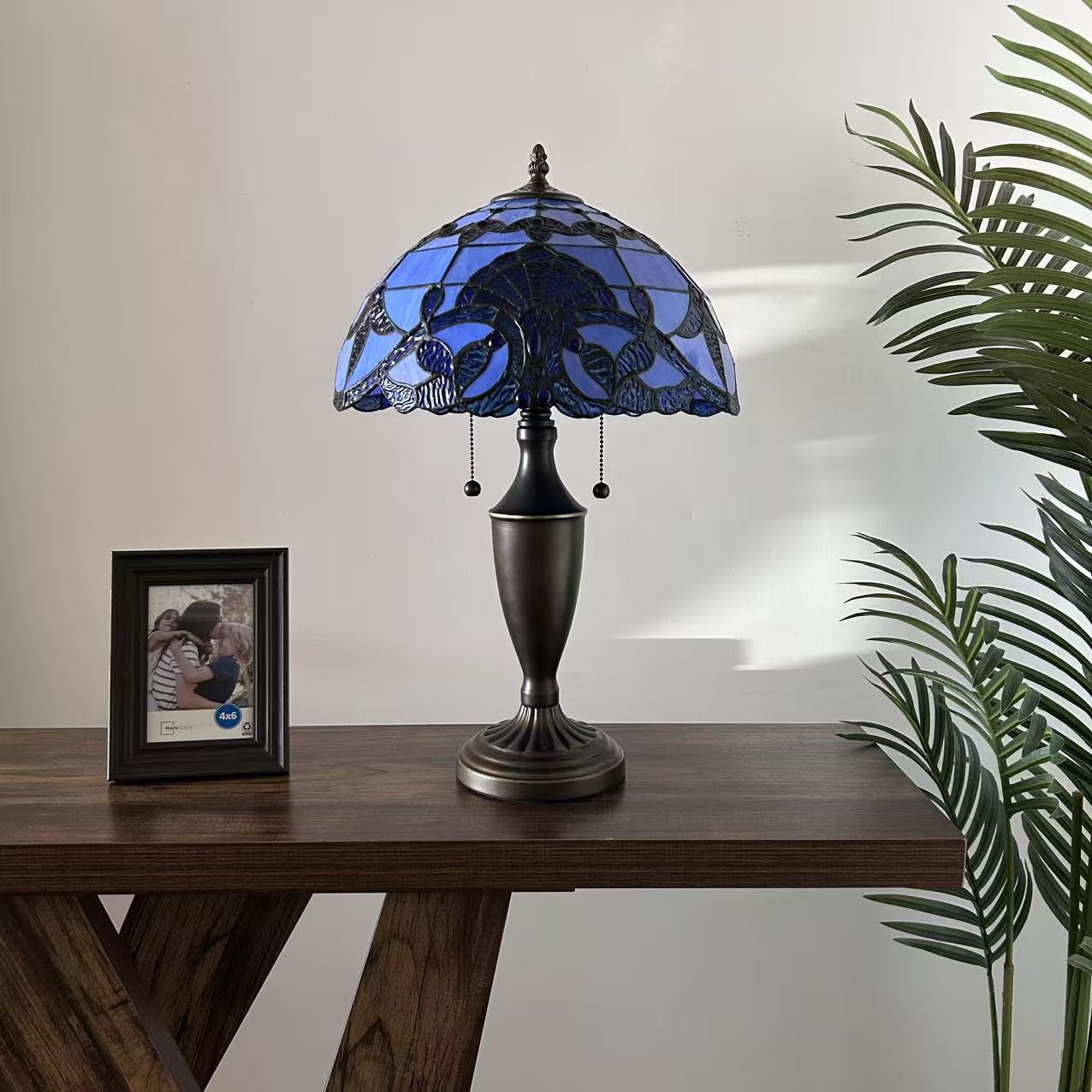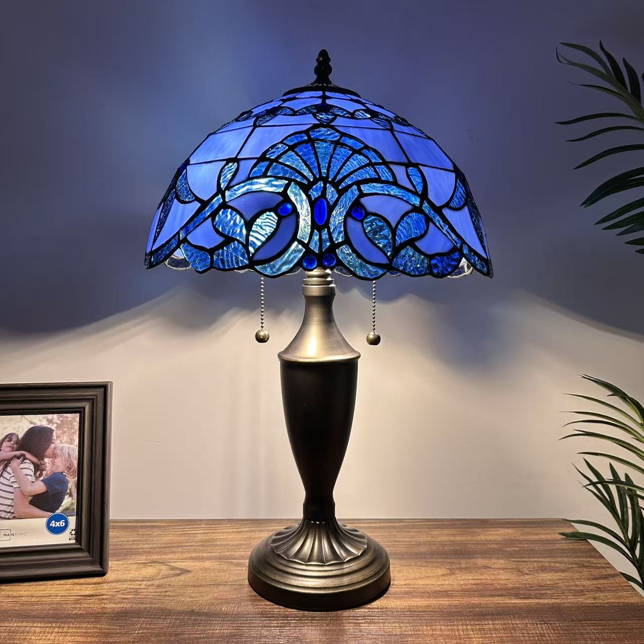 Tiffany Style Table Lamp Blue Stained Glass Baroque Style 14"W*14"D*21"H