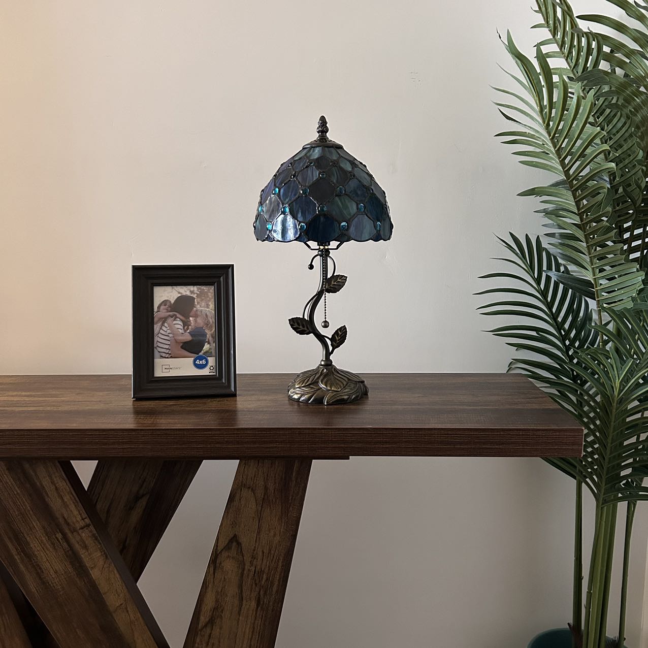 Tiffany Style Table Lamp Blue Stained Glass LED Bulb Included 8"W*8"D*16"H