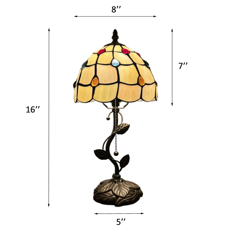 Tiffany Style Table Lamp Gold Stained Glass Crystal Beans LED Bulb Included 8"W*8"D*16"H