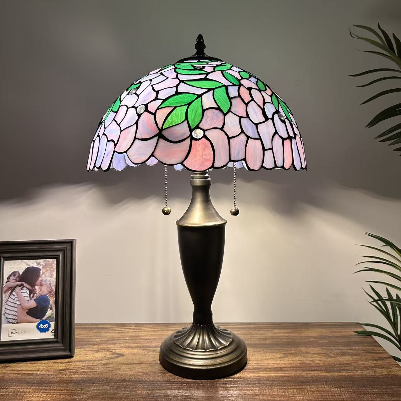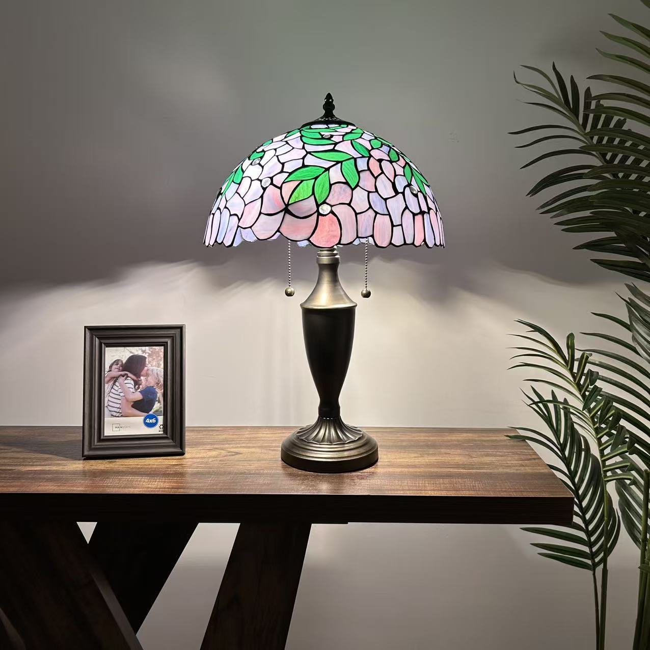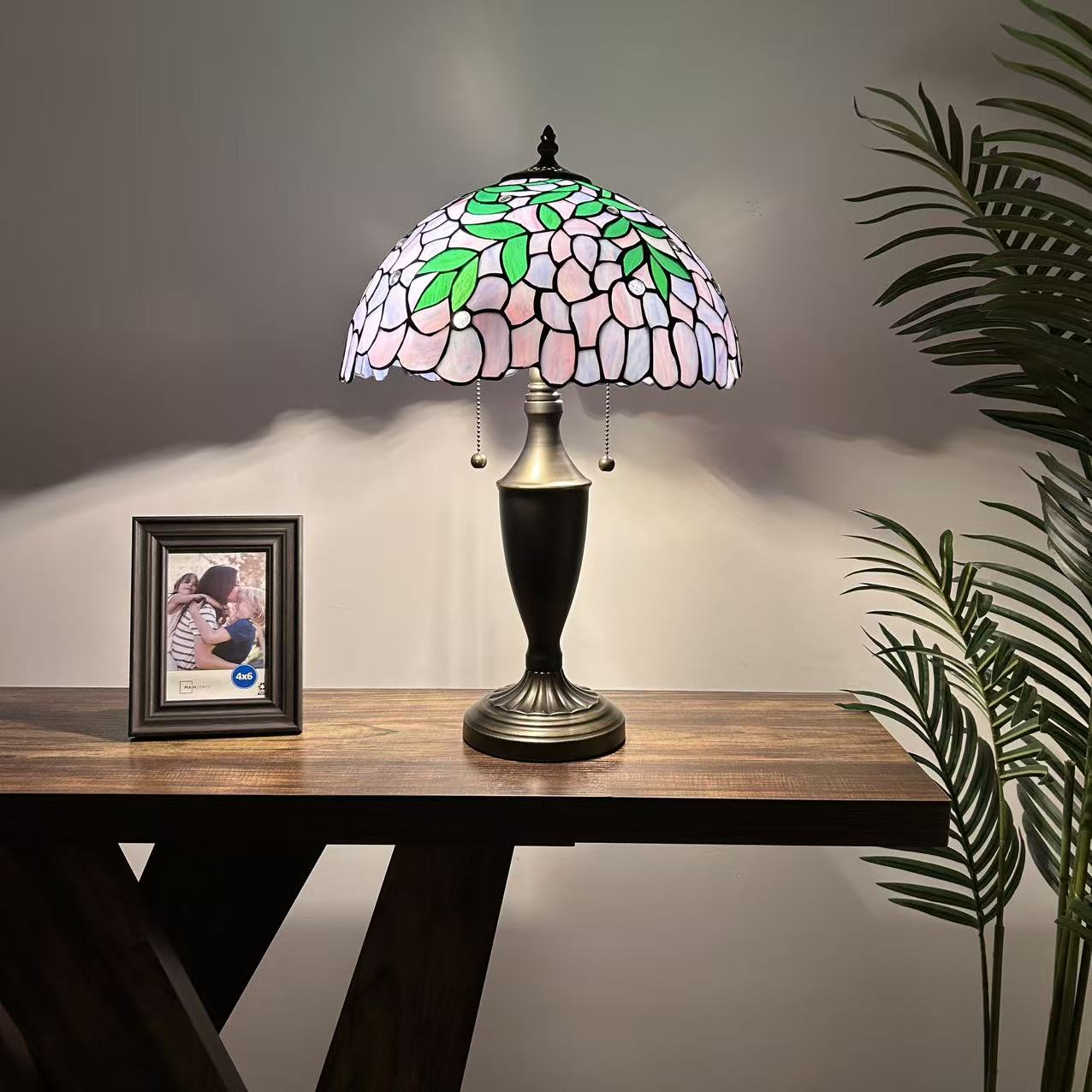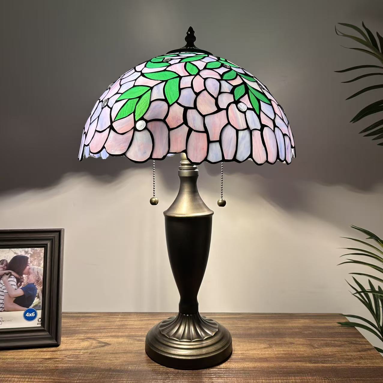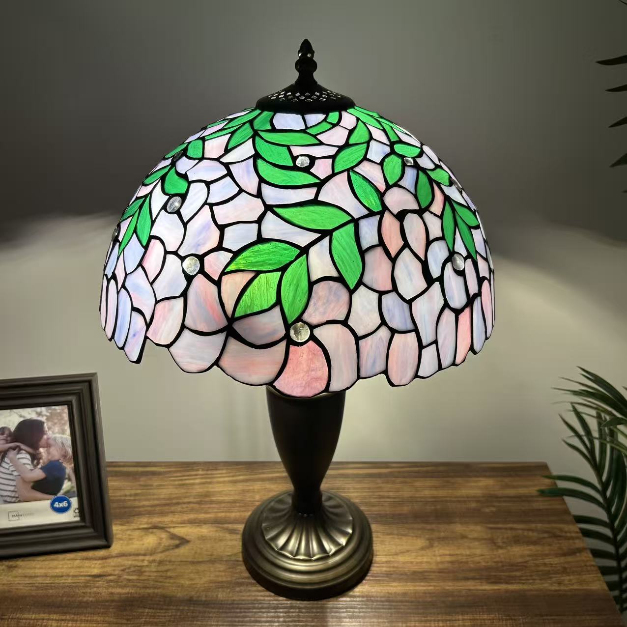 Tiffany Style Table Lamp Purple Stained Glass Green Leaves 14"W*14"D*21"H