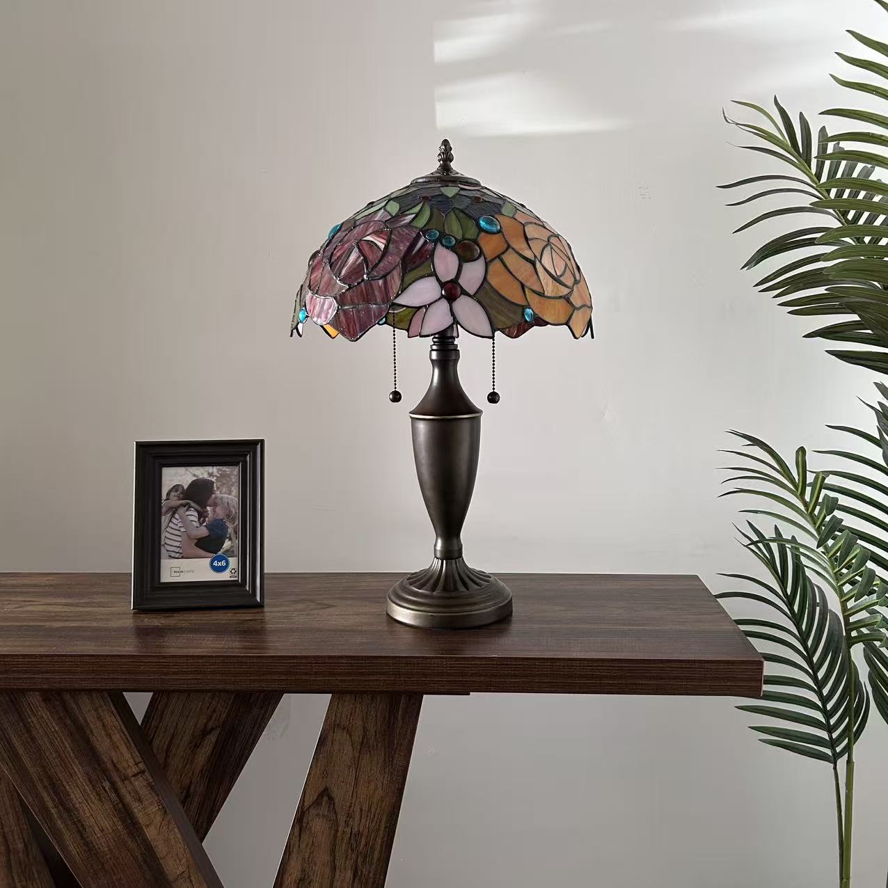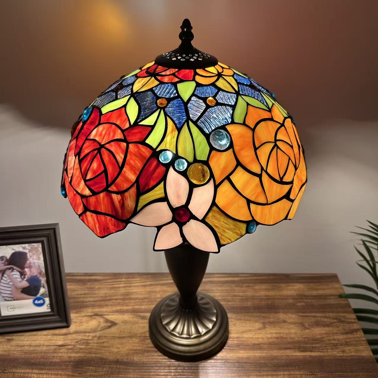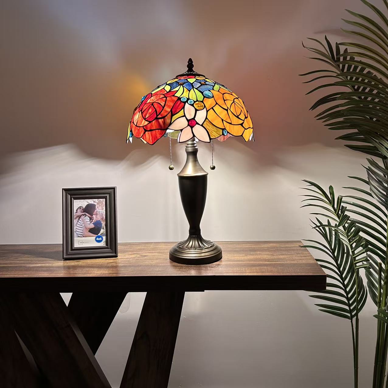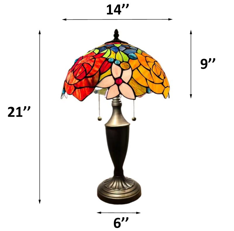 Tiffany Style Table Lamp Stained Glass Rose Flowers 14"W*14"D*21"H