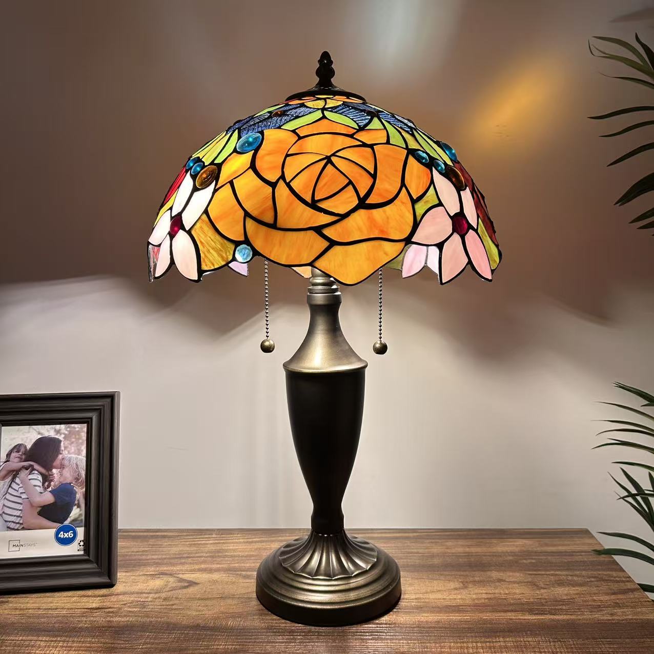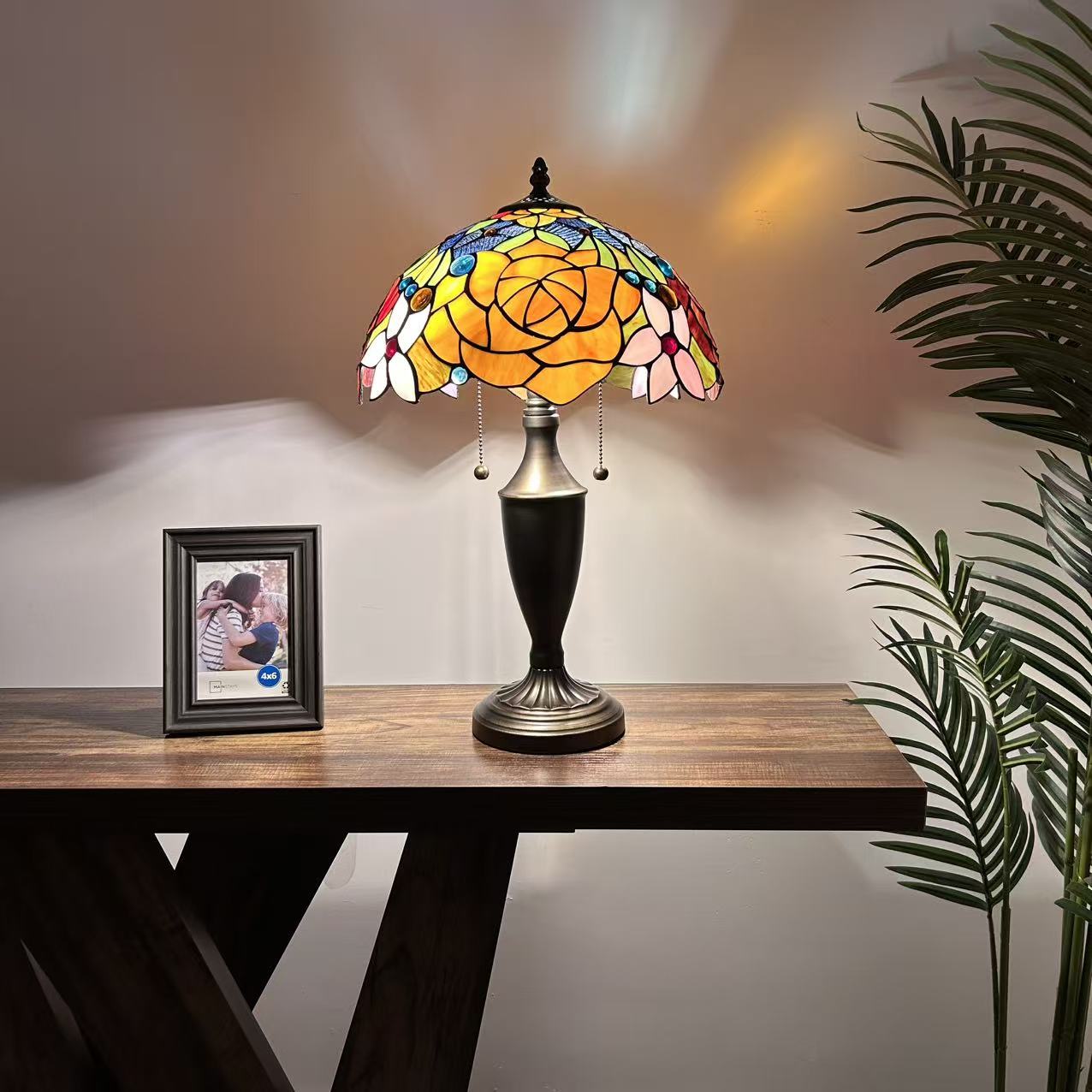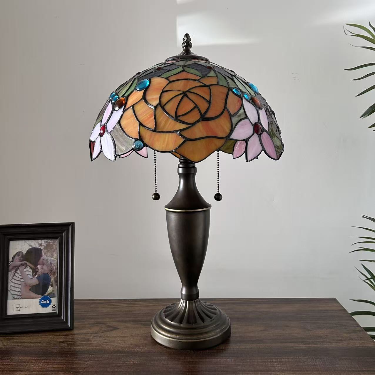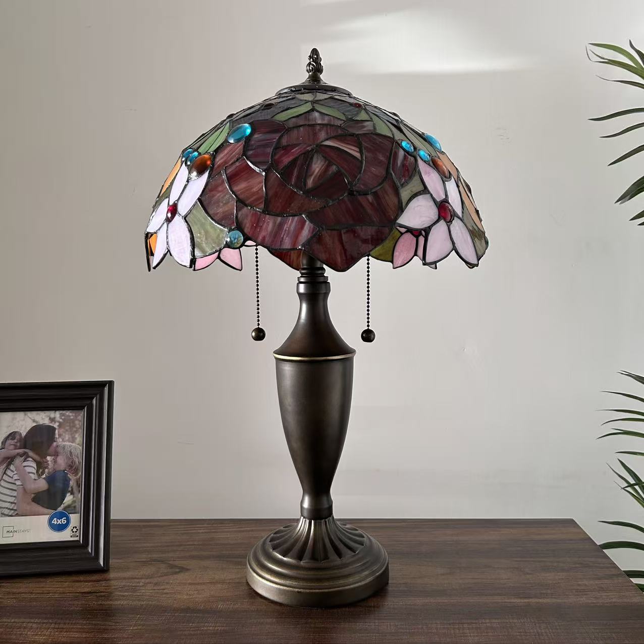 Tiffany Style Table Lamp Stained Glass Rose Flowers 14"W*14"D*21"H