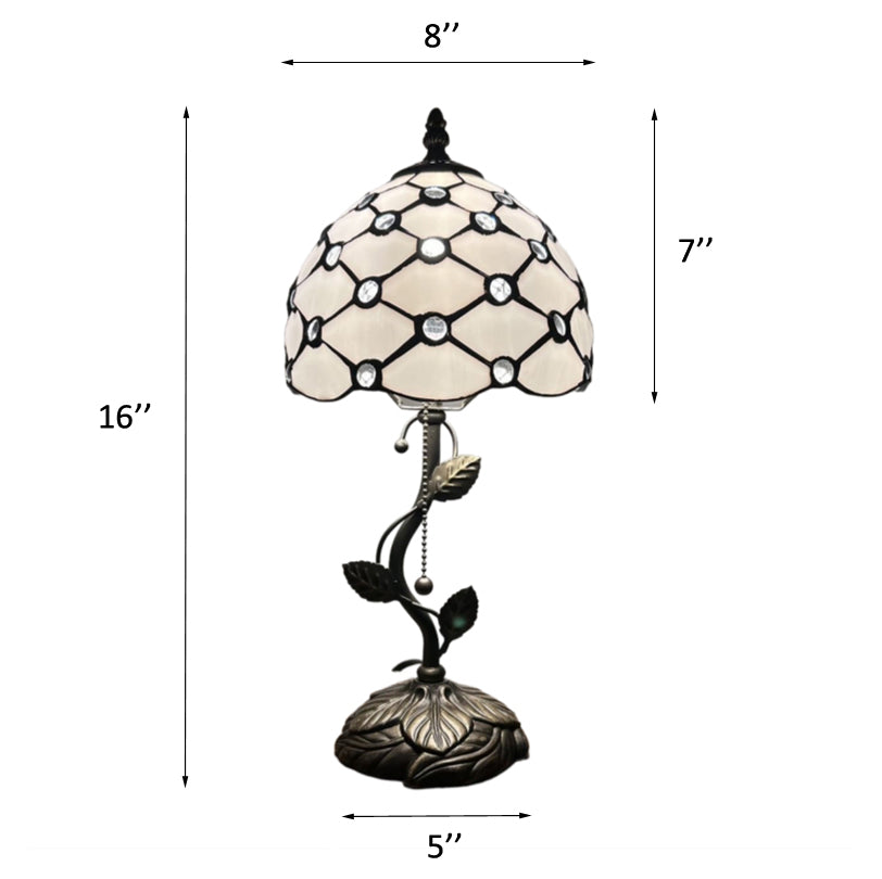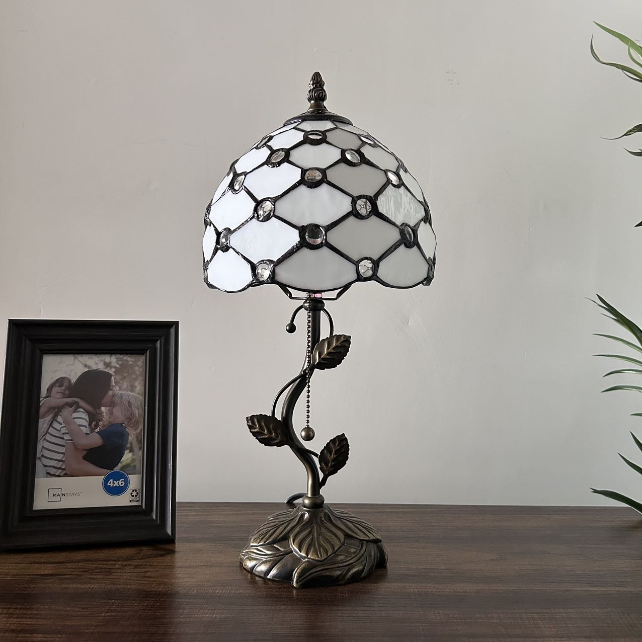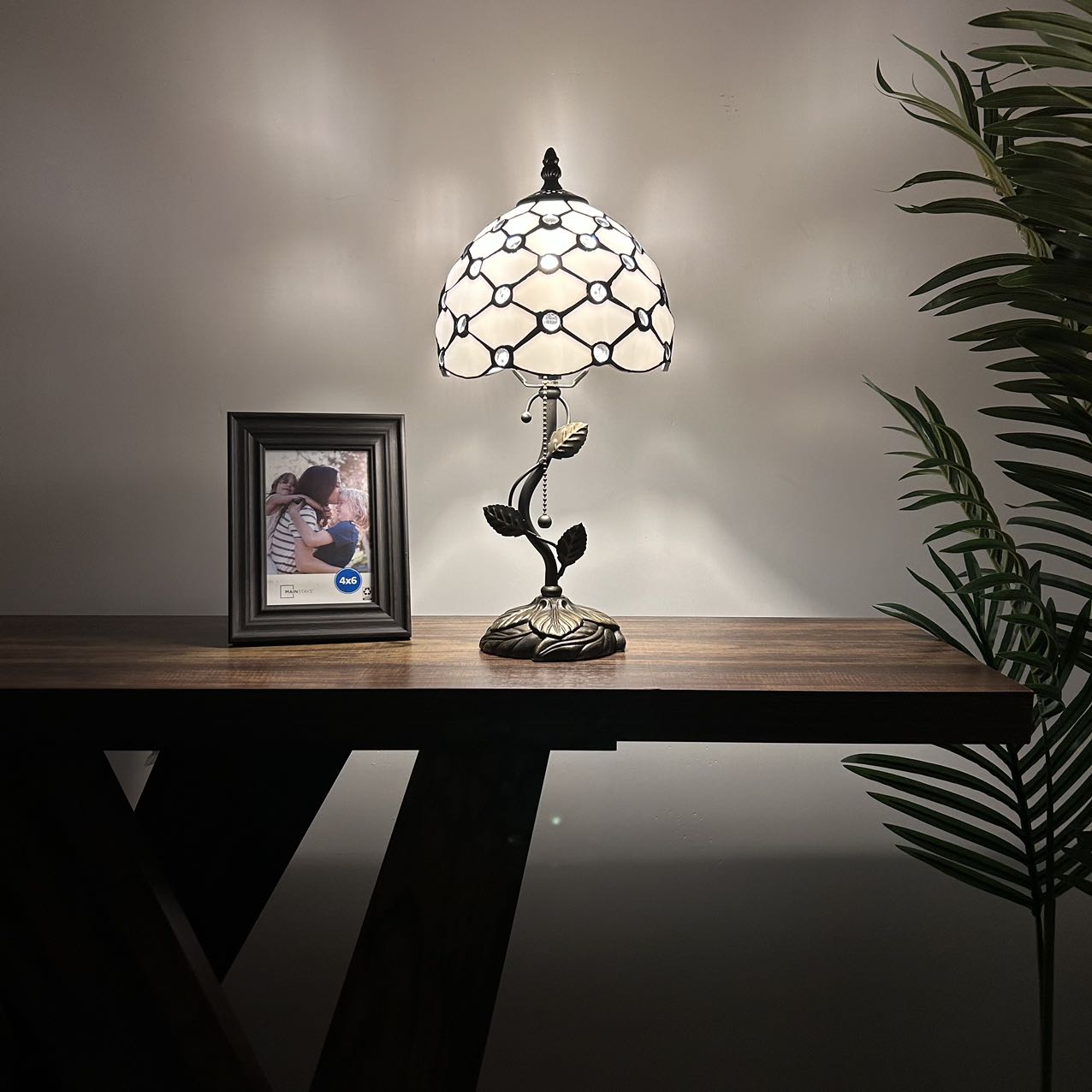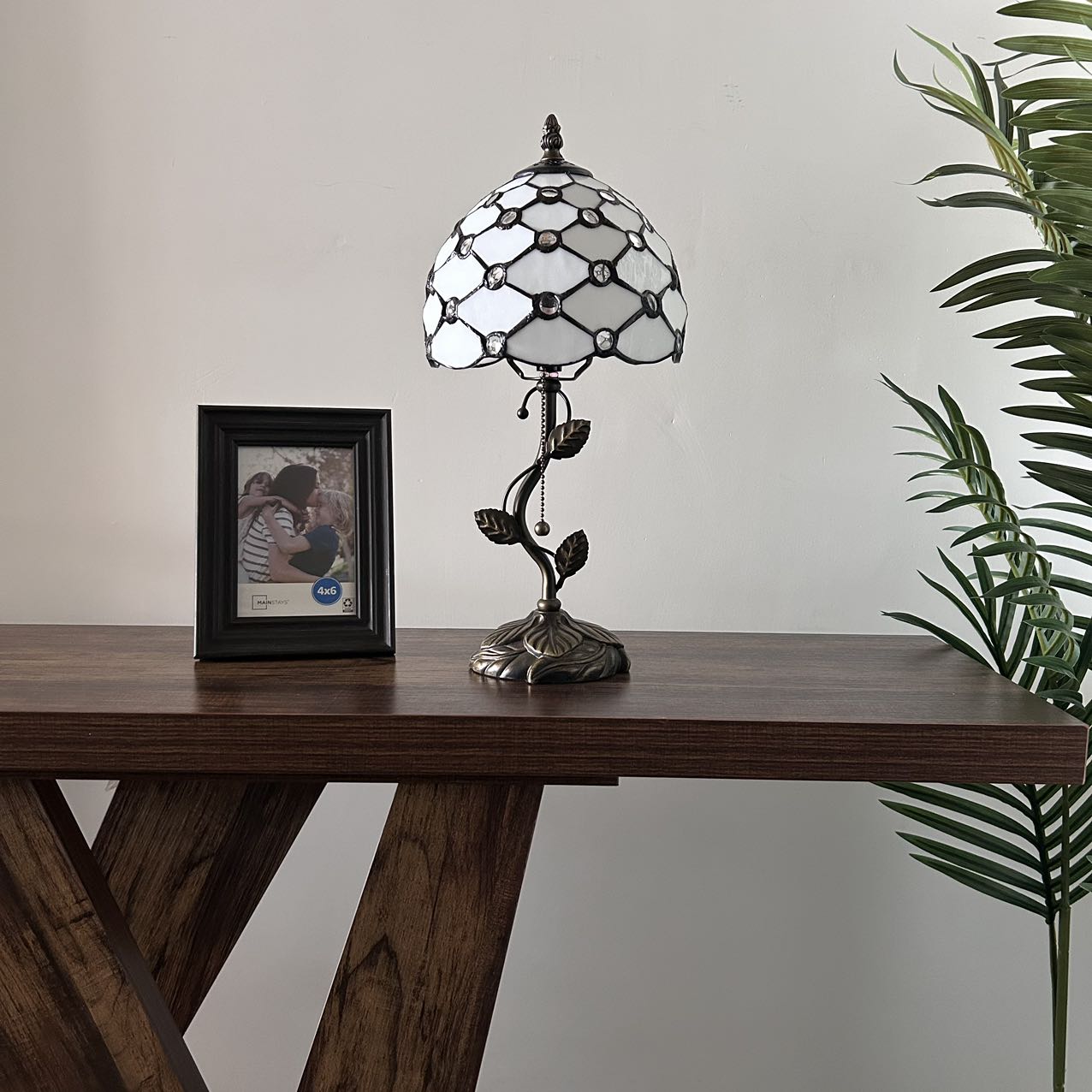 Tiffany Style Table Lamp White Stained Glass Crystal Beans LED Bulb Included 8"W*8"D*16"H