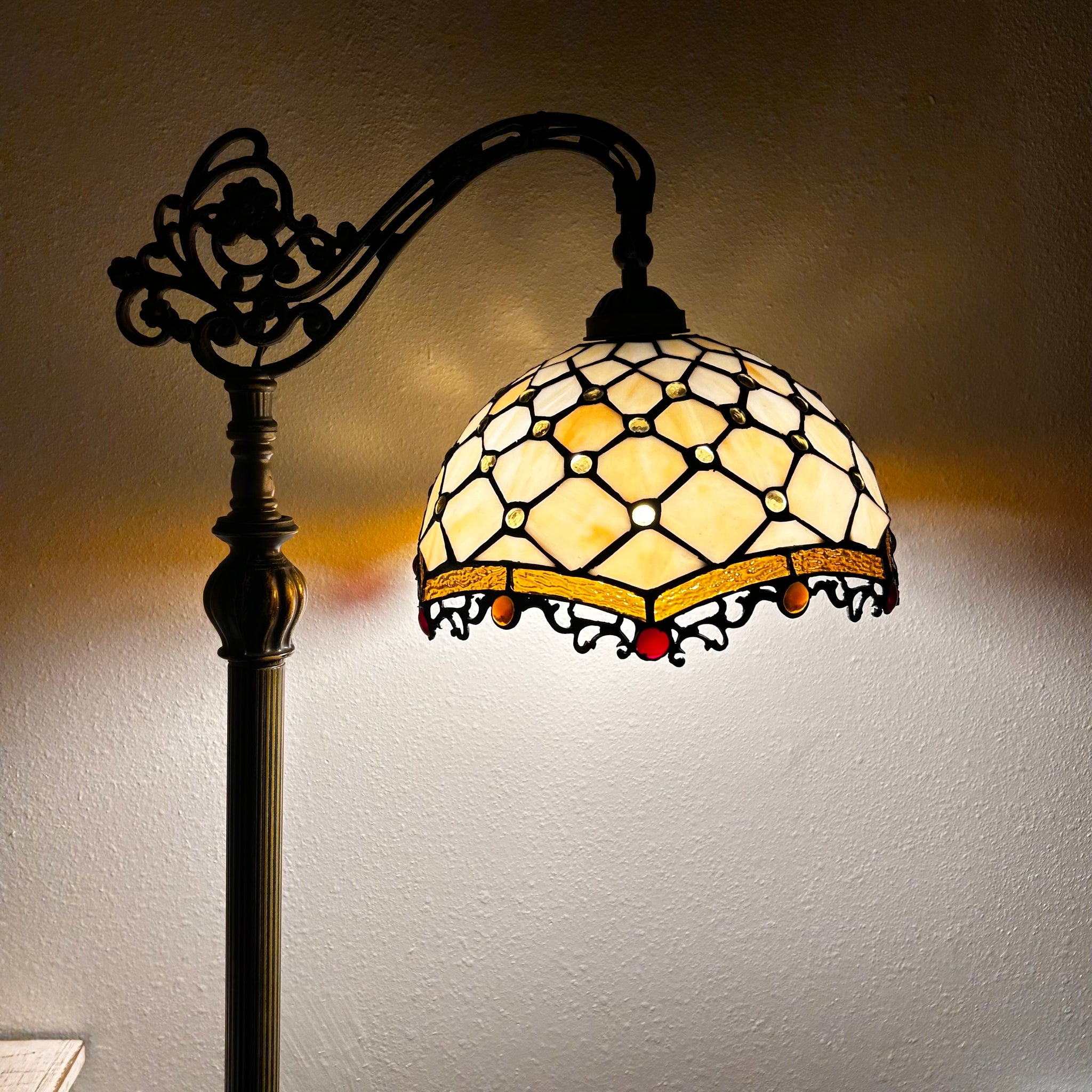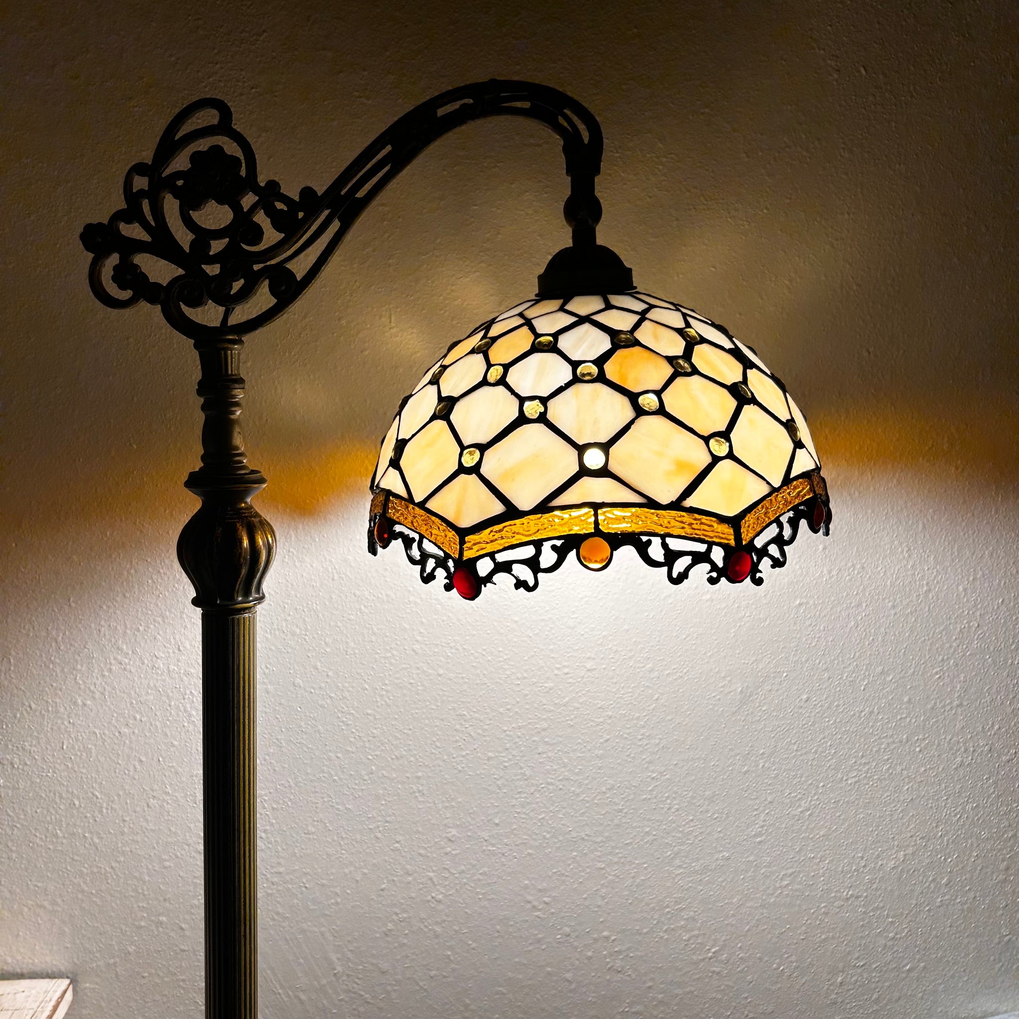 Tiffany Style Floor Lamp Gold Stained Glass Crystal Beans Gooseneck Adjustable Vintage EF1224